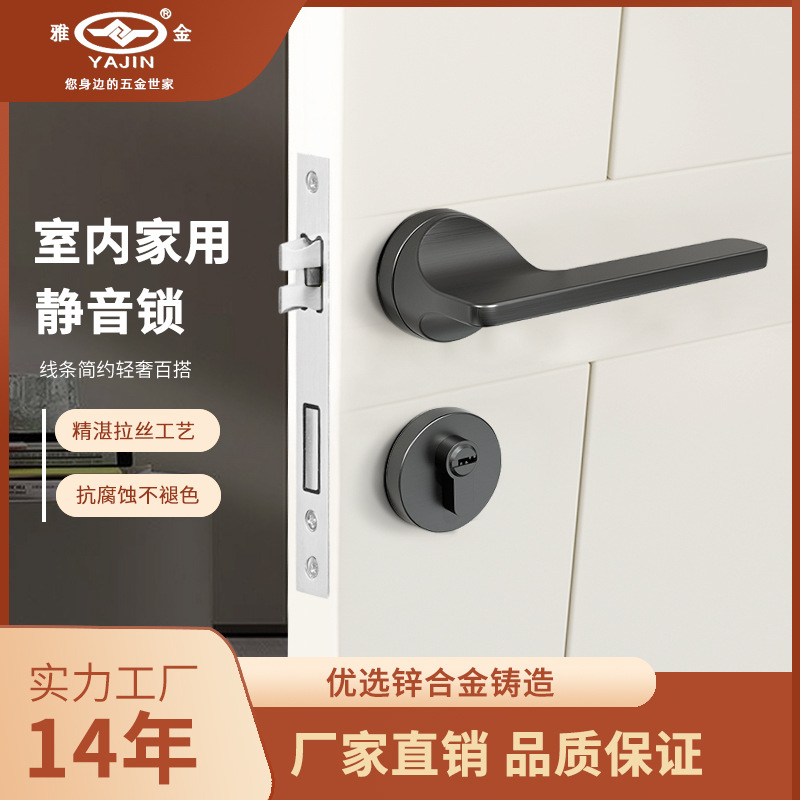 Khóa cửa trong nhà phòng ngủ Khóa cửa phòng màu đen chia khóa tay cầm hợp kim kẽm khóa tối giản hút từ không ồn Khóa cửa. Khóa cửa nhập khẩu theo yêu cầu.