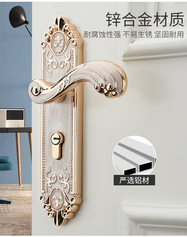 Khóa cửa trong nhà phòng ngủ màu trắng ngà đa năng câm tay khóa cửa gỗ rắn khóa cửa khóa nhà Khóa cửa phong cách Châu Âu