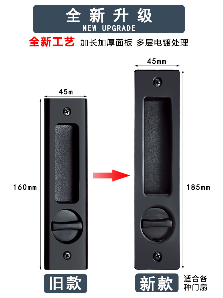 Khóa cửa trượt bằng gỗ Mỹ Khóa cửa trượt Ban công trong nhà màu đen Phòng tắm nhà bếp di động Khóa móc cửa trượt bằng chìa khóa