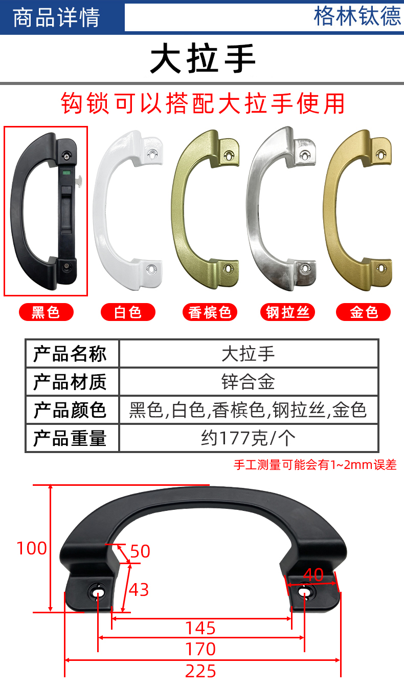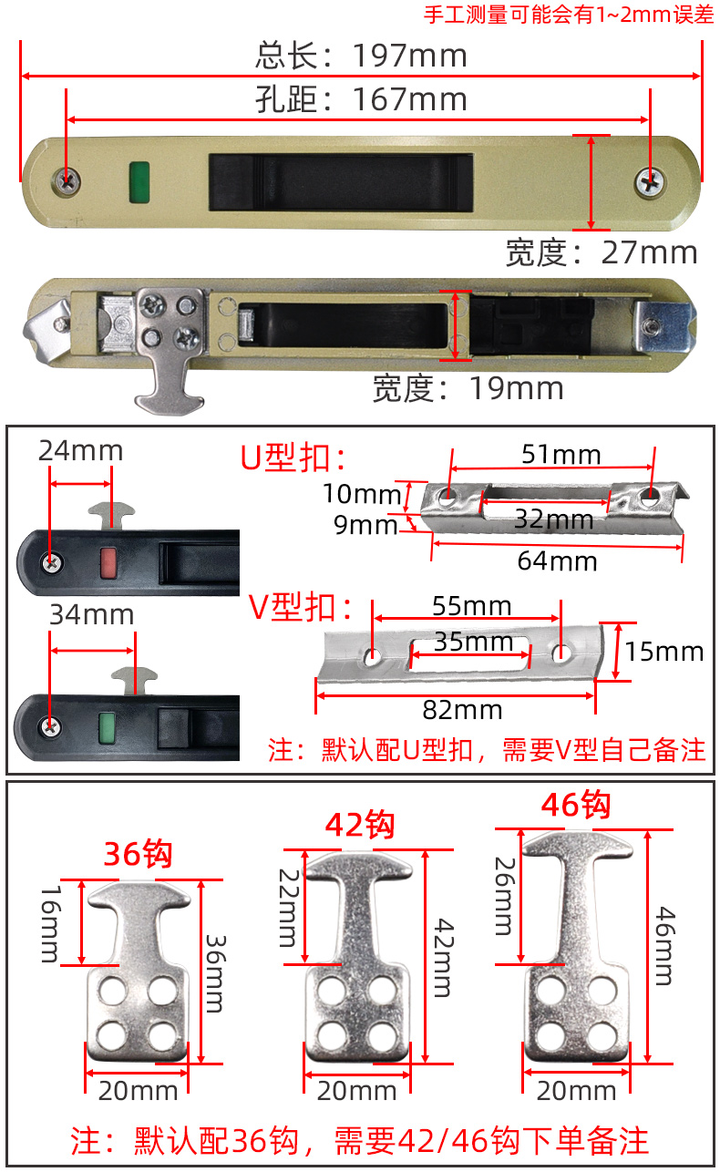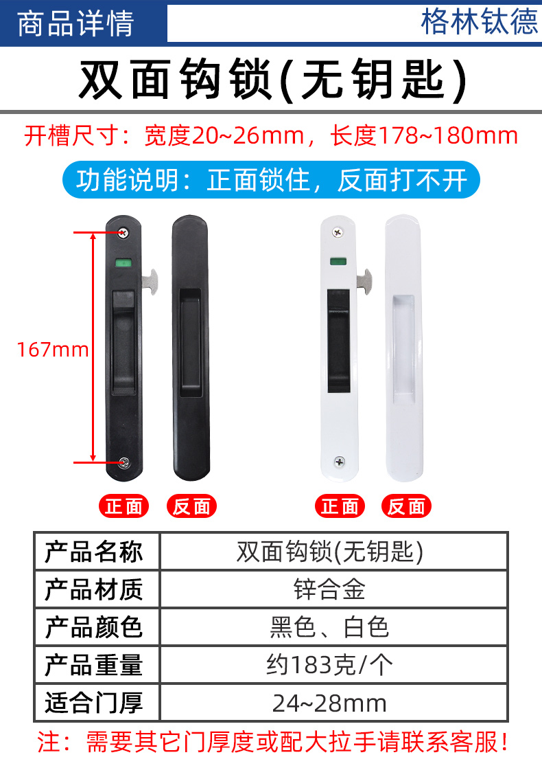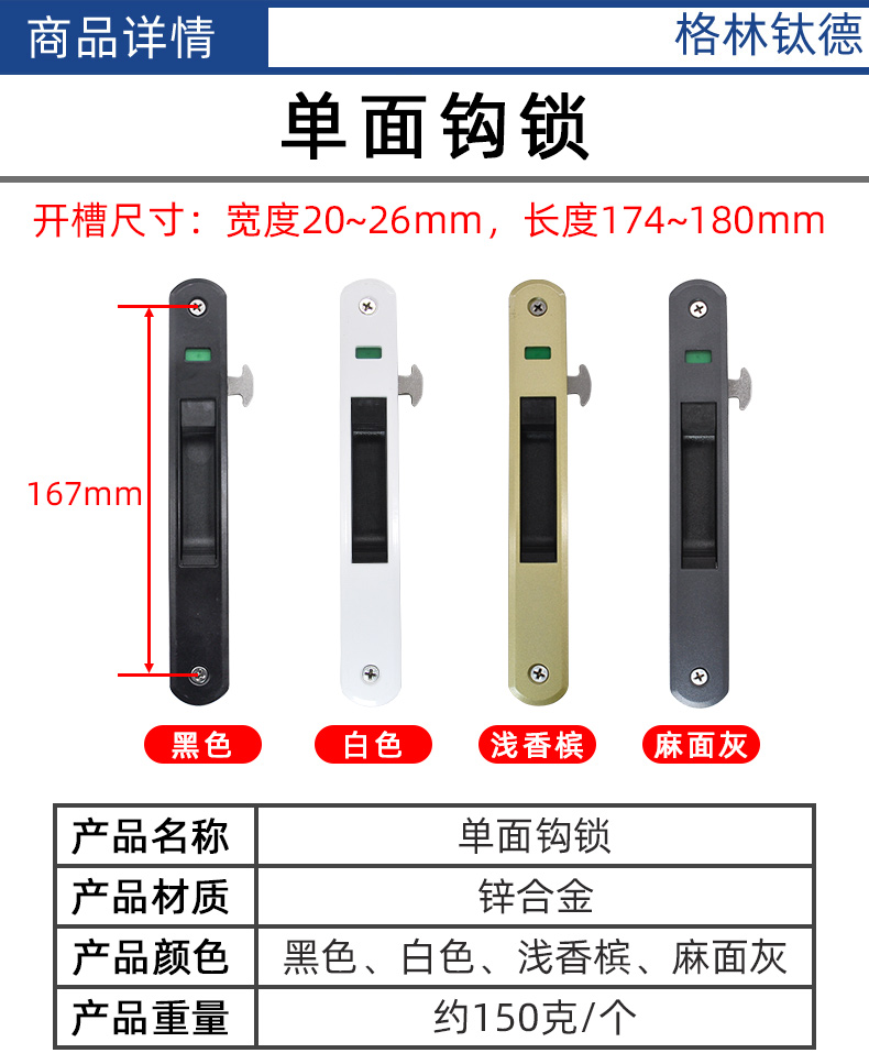 Mã sản phẩm: F76866S588STJ8 Nhãn hiệu: Khác Có phải là người nộp thuế chung không: Không Màu sắc: Không có tay cầm/có tay cầm màu đen/tay cầm màu trắng/tay cầm màu vàng/tay cầm màu sâm panh/tay cầm bằng thép/tay cầm bằng thép Chất liệu: Hợp kim nhôm Mẫu mã: GS-003 Xử lý bề mặt: Thông số kỹ thuật khác: Khóa móc một mặt 1 màu đen / khóa móc một mặt màu trắng 1 / Khóa móc một mặt màu xám mờ 1 / Khóa móc một mặt màu sâm panh nhạt 1 / Khóa móc hai mặt (không có chìa khóa) 1 màu đen / đôi -Khóa móc hai mặt (không chìa) trắng 1/ Khóa móc hai mặt (có chìa) đen 1/ Khóa móc hai mặt (có chìa) trắng 1/ Khóa móc hai mặt (có chìa) 1 trắng