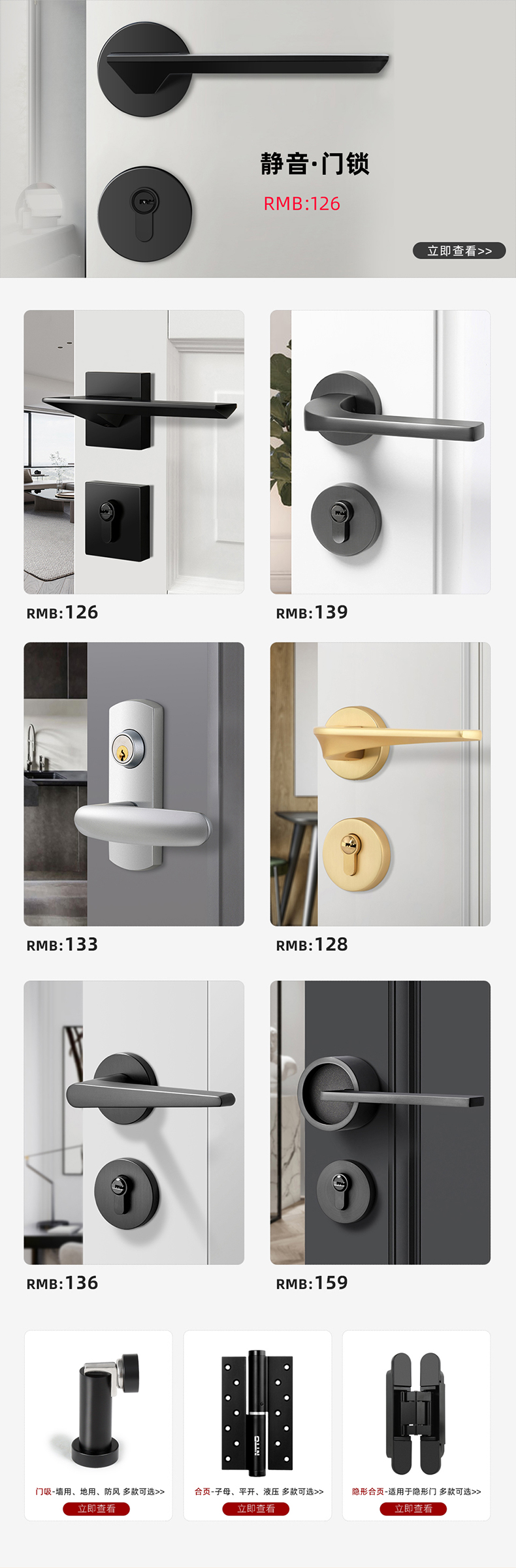 - 适配门厚度: 30mm-50mm