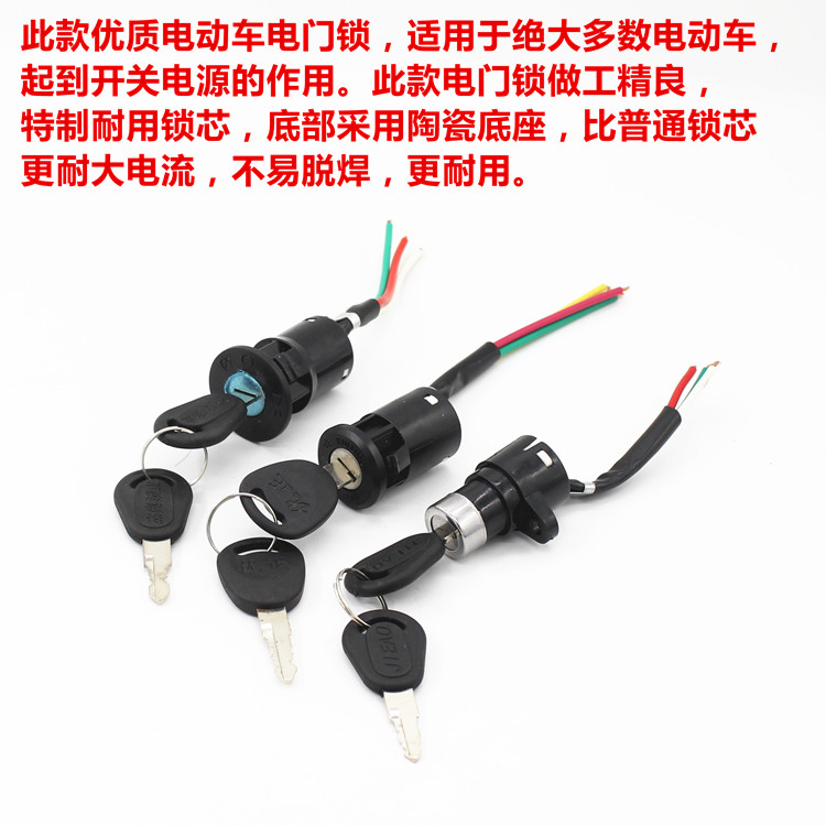 此款优质电动车电门锁,适用于绝大多数电动车,起到开关电源的作用。此款电门锁做工精良,特制耐用锁芯,比普通锁芯更耐大电流,不易脱焊,更耐用。