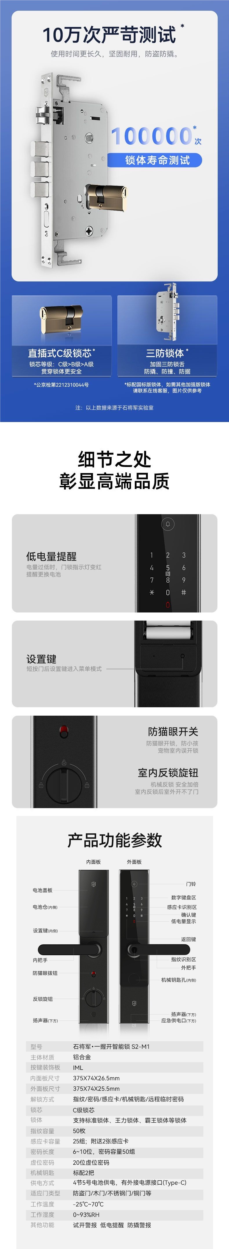 Khóa Stone S2-M1 Khóa Vân Tay Thông Minh Hộ Gia Đình Chống Trộm Cửa Kết Hợp Khóa Điện Tử Khóa Cửa Thông Minh