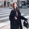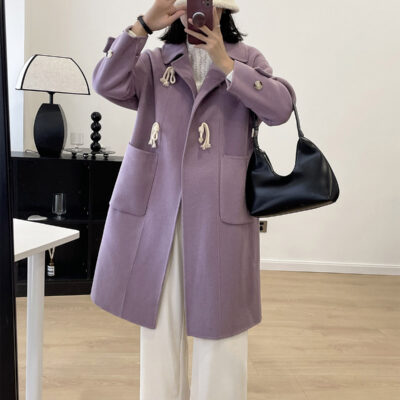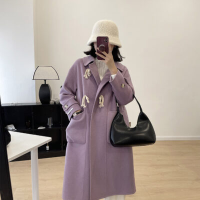 Khóa sừng len 2 mặt áo khoác len nữ mùa thu đông mới trung dài áo khoác len 220764