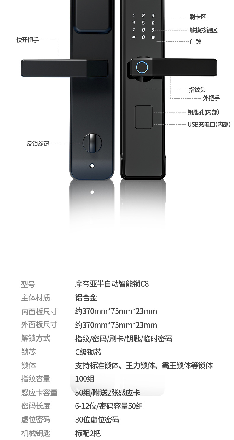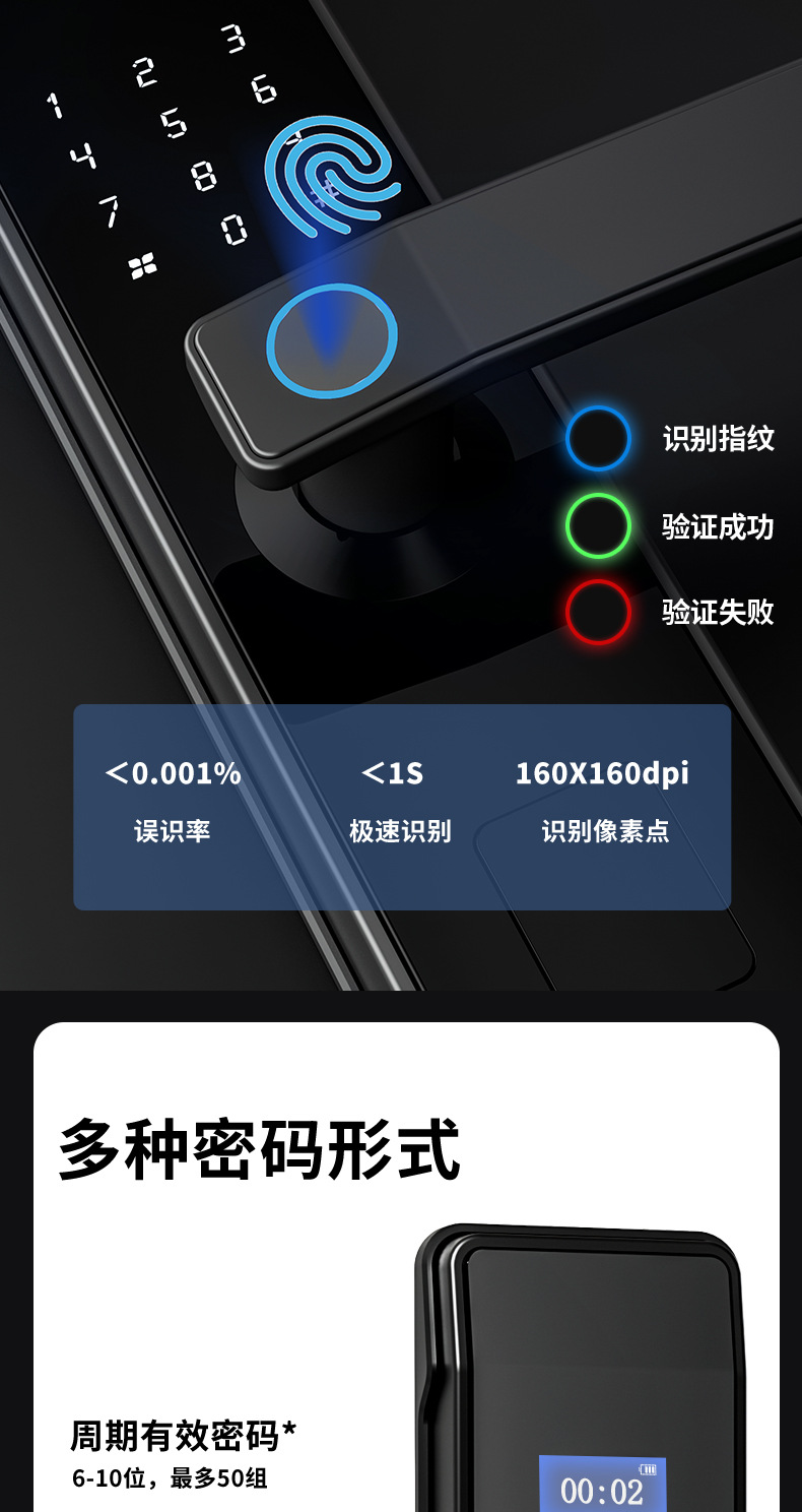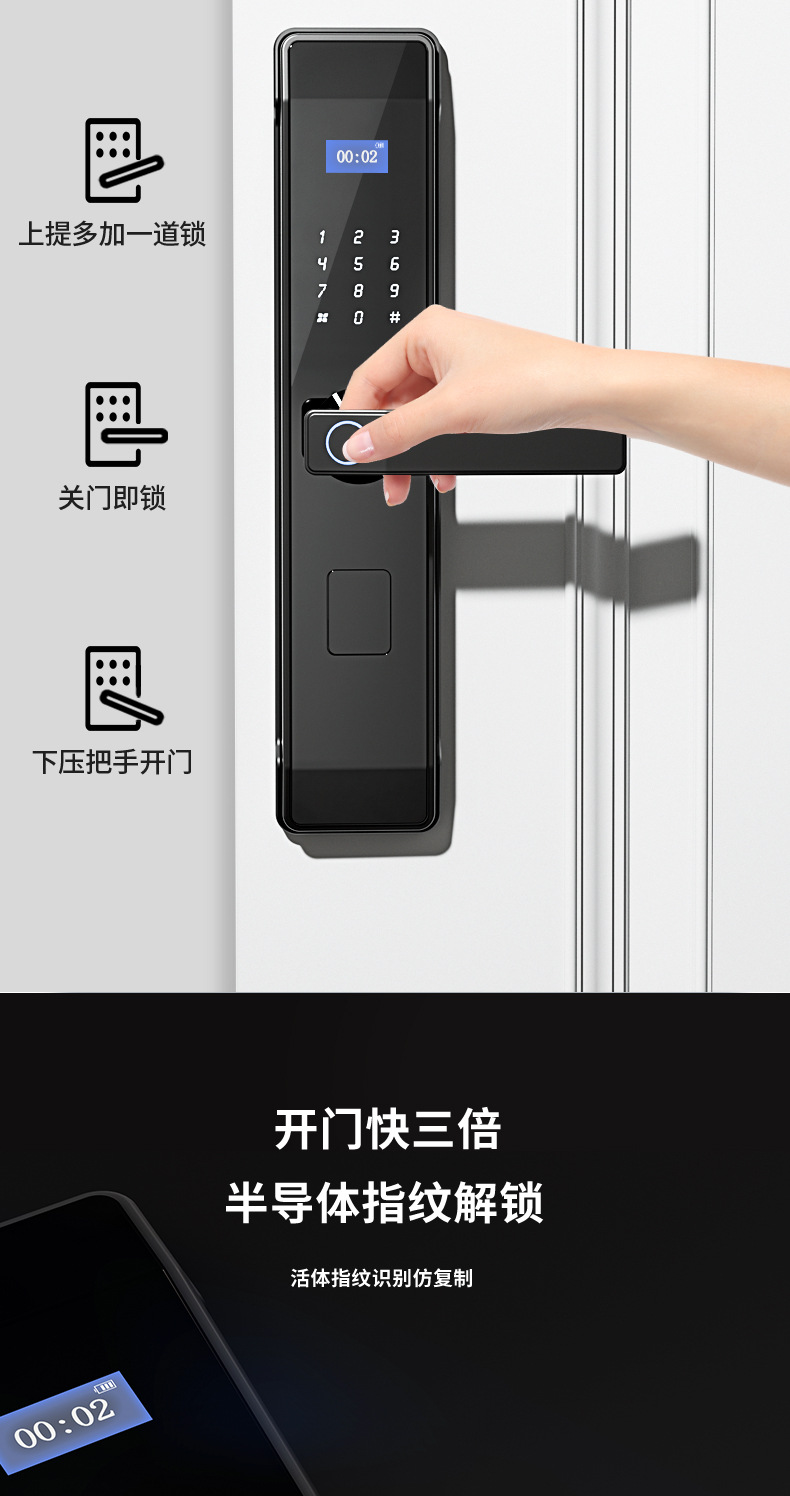 Khóa vân tay bán tự động mật khẩu khóa điện tử khóa thông minh khóa cửa gỗ trong nhà khóa cửa thông minh một nắm mở khóa chống trộm đa năng