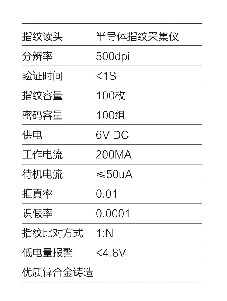 Dung lượng lưu trữ vân tay: 100 Mã sản phẩm: H23 Thương hiệu: Techangheng Tuổi thọ: 999 Nguồn điện: DC Model: H23 Thời gian quét <: 0,7 Phạm vi ứng dụng: Cửa chống trộm Thông số kỹ thuật: Techangheng H23 Tỷ lệ nhận dạng sai <: 0,01 Giao hàng tận nơi : Không giao hàng tận nơi Có cung cấp dịch vụ lắp đặt hay không: Không Nhiệt độ làm việc: -20~60 Độ ẩm làm việc: 20-93 Tùy chỉnh xử lý: Không Tỷ lệ từ chối <: 0,01 Có cung cấp nguồn cung độc quyền xuất khẩu xuyên biên giới hay không: Không Phong cách: Phong cách hiện đại và đơn giản: Lỗ nhìn trộm trực quan Số lần mở khóa>:999999