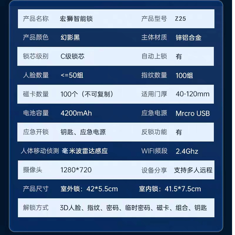 Dung lượng lưu trữ vân tay: 80 Mã sản phẩm: hs25 Thương hiệu: Hongshi Tuổi thọ: 1000000 Nguồn điện: DC Model: hs25 Thời gian quét <: 0.01 Phạm vi ứng dụng: Cửa chống trộm, cửa gỗ, cửa sắt, cửa inox Thông số kỹ thuật: Cơ bản/ Mô hình graffiti có thể nhìn thấy/Khuôn mặt /Khuôn mặt/Mô hình graffiti trên khuôn mặt Tỷ lệ nhận dạng sai<:0,01 Có giao hàng đến tận nhà hay không: Giao hàng ở tầng trên Có cung cấp dịch vụ lắp đặt hay không: Có Phương pháp so sánh: 1; 1 Nhiệt độ làm việc: -20-60 Độ ẩm làm việc: 50 Xử lý và tùy chỉnh : Tỷ lệ từ chối thực sự<: 0,01 Kiểu: Kiểu Trung Quốc mới: Vân tay/mật khẩu/bằng phím/lỗ nhìn trộm trực quan/nhận dạng khuôn mặt/mở khóa từ xa/số lần mở khóa mở khóa từ xa>: 100000
