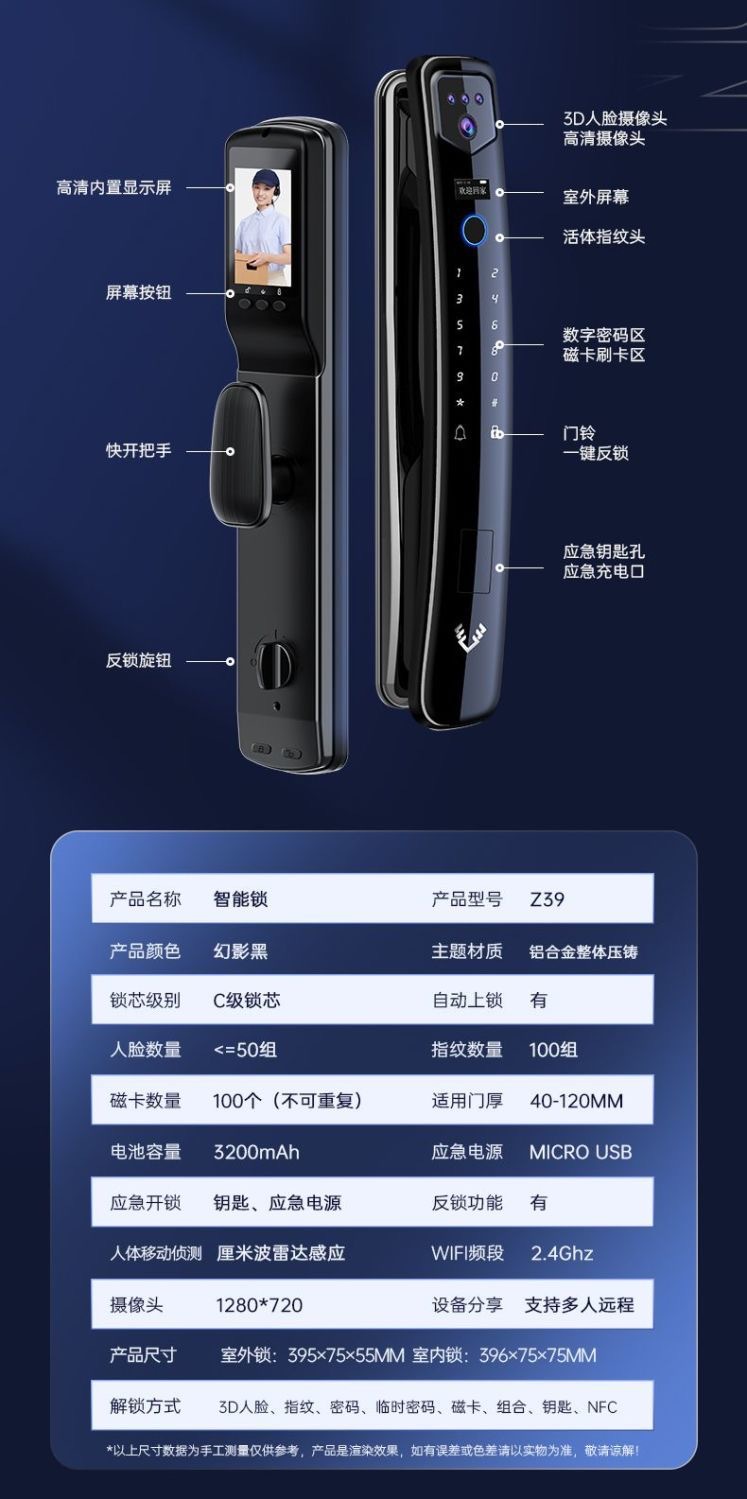 Khóa vân tay nhận diện khuôn mặt khóa cửa chống trộm khóa cửa thông minh khóa mã số gia đình khóa thông minh mắt mèo trực quan