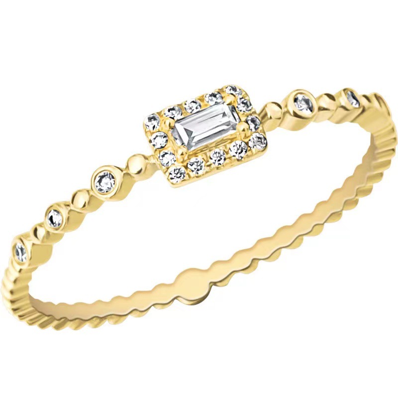 Khối lập phương đường S925 mạ bạc vàng 14K tòa án xếp chồng lên nhau nhẫn kim cương nữ phong cách Baroque tuyệt đẹp vẻ đẹp cổ điển Nhẫn Nhẫn