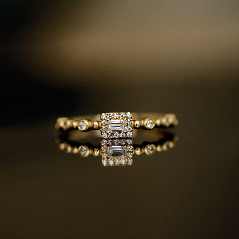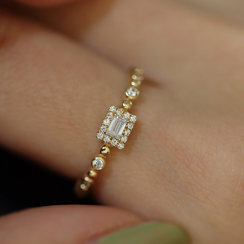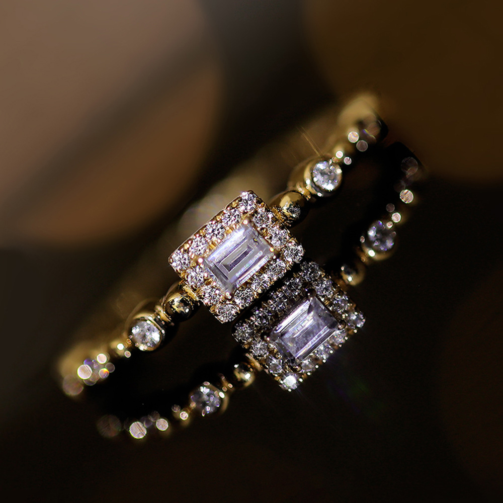 Khối lập phương đường S925 mạ bạc vàng 14K tòa án xếp chồng lên nhau nhẫn kim cương nữ phong cách Baroque tuyệt đẹp vẻ đẹp cổ điển Nhẫn Nhẫn