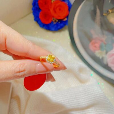 Khối lập phương nhỏ nhẫn đường thời trang nữ cao cấp nhẫn mở màu vàng nhẫn kim cương cho bạn gái món quà Xiaohongshu cùng phong cách