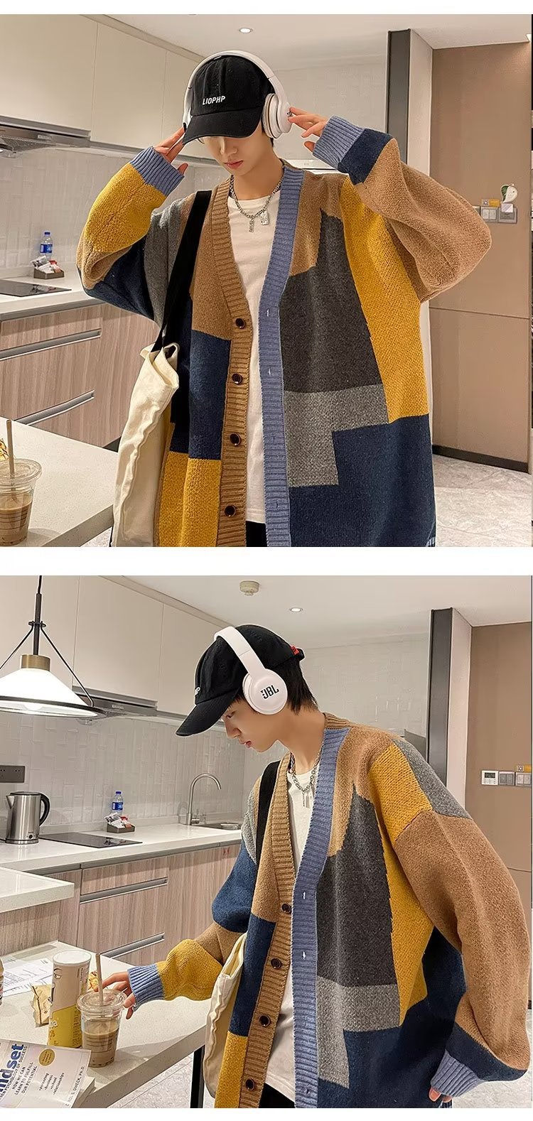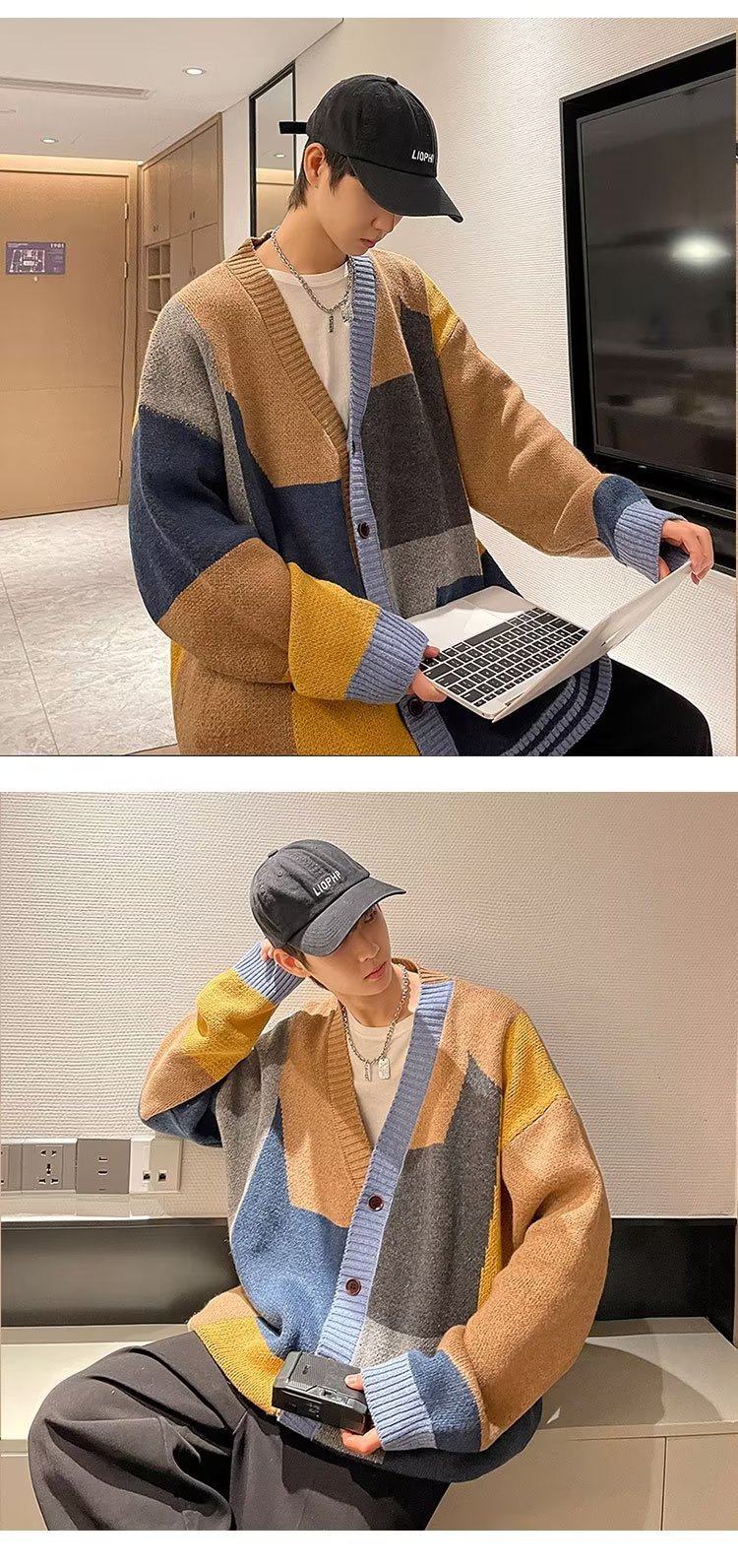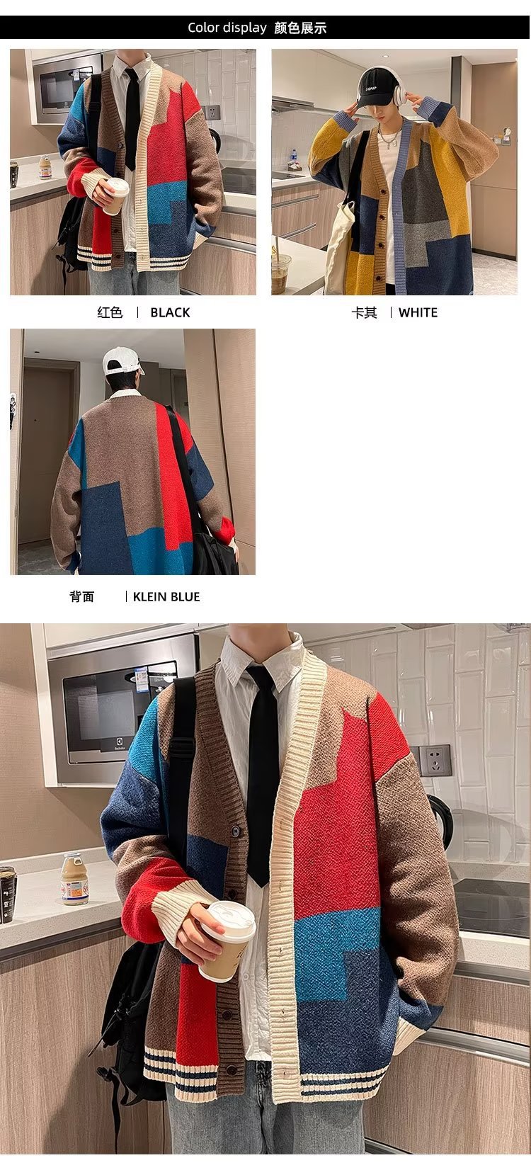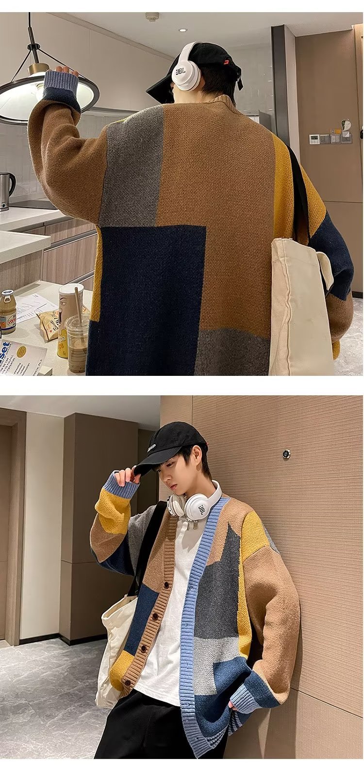 Khối Màu Cardigan Dệt Kim Áo Len Nam Plus Kích Thước Plus Kích Thước Hợp Thời Trang Mỡ Rời Áo Khoác Mùa Thu Cặp Đôi Lười Gió