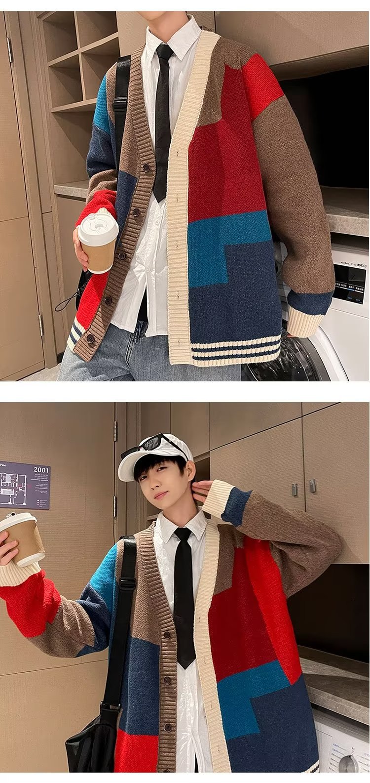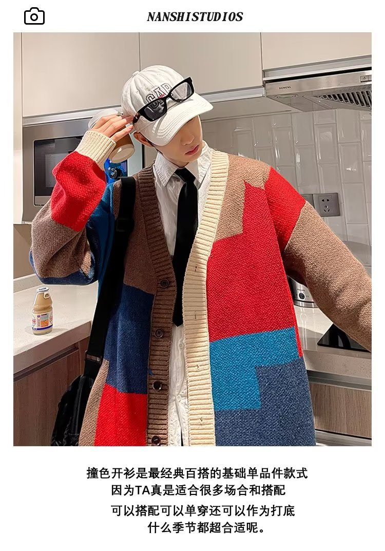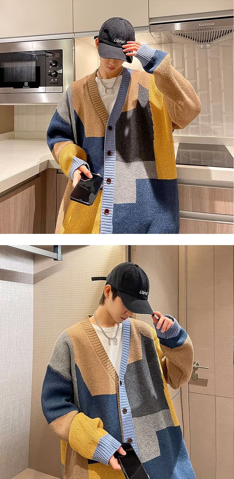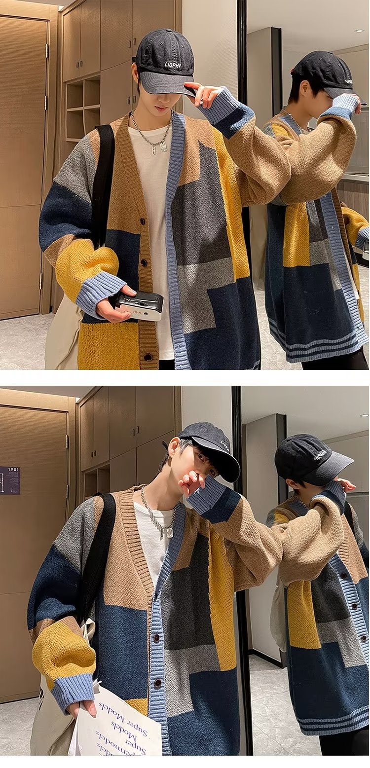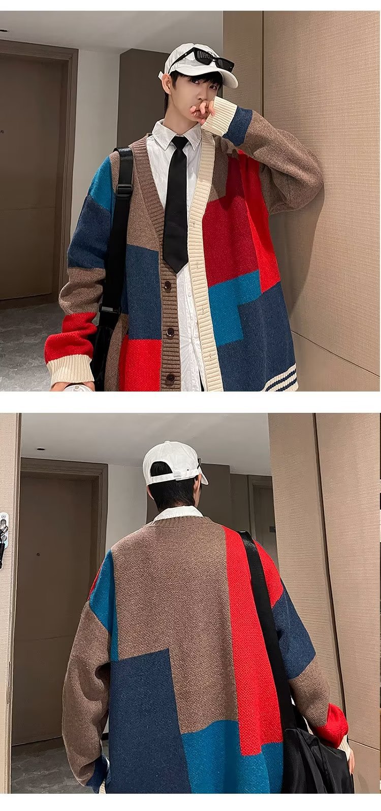 Khối Màu Cardigan Dệt Kim Áo Len Nam Plus Kích Thước Plus Kích Thước Hợp Thời Trang Mỡ Rời Áo Khoác Mùa Thu Cặp Đôi Lười Gió