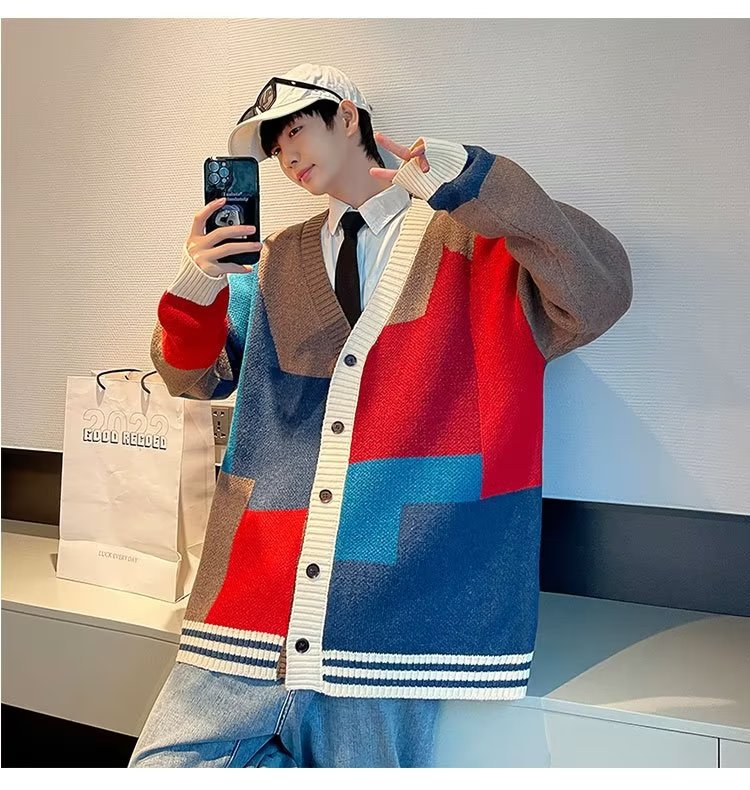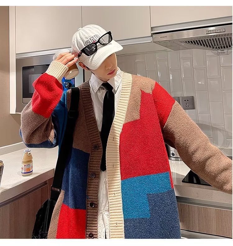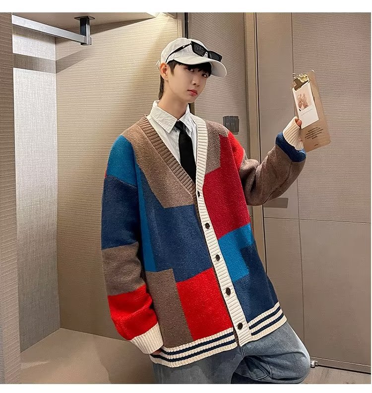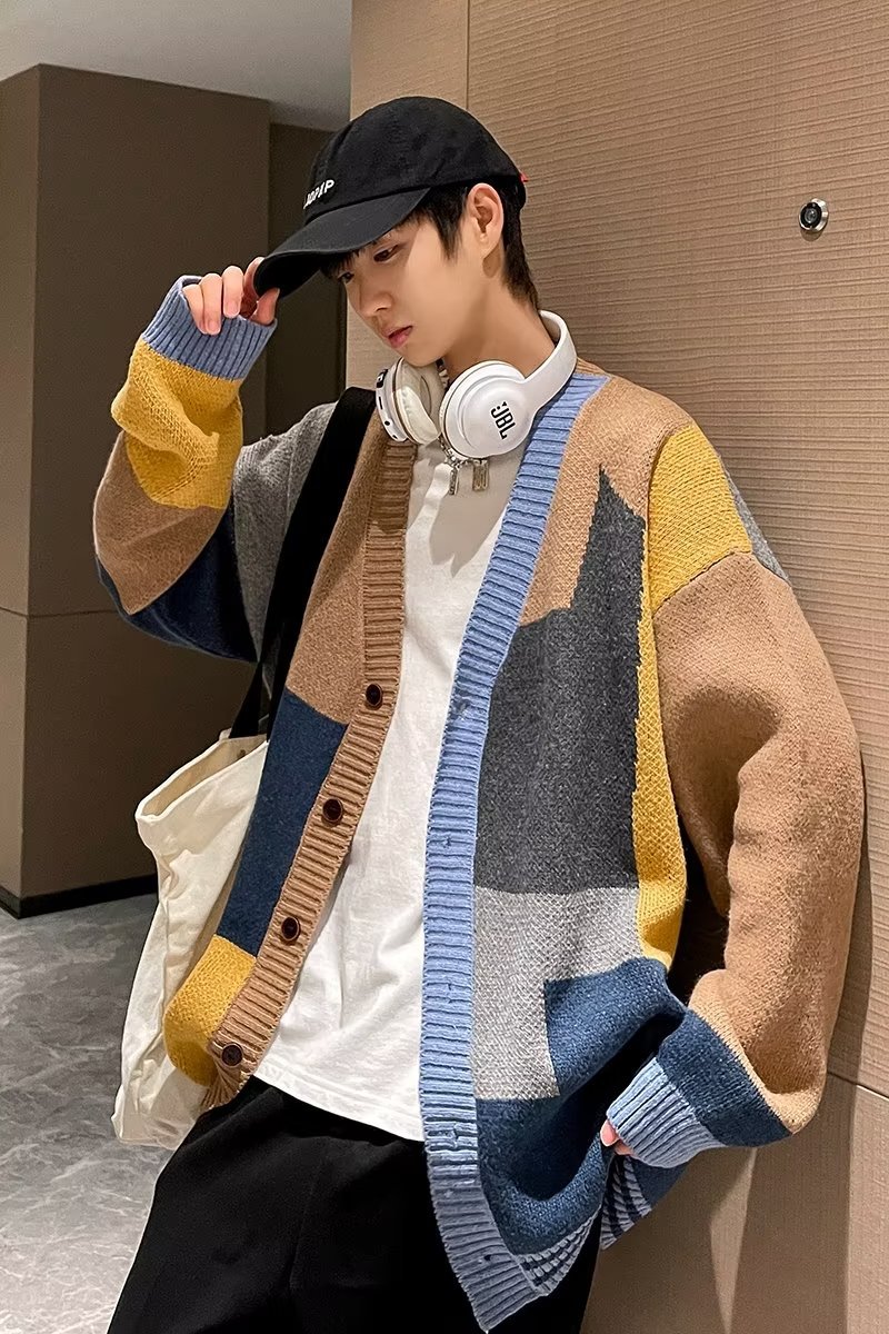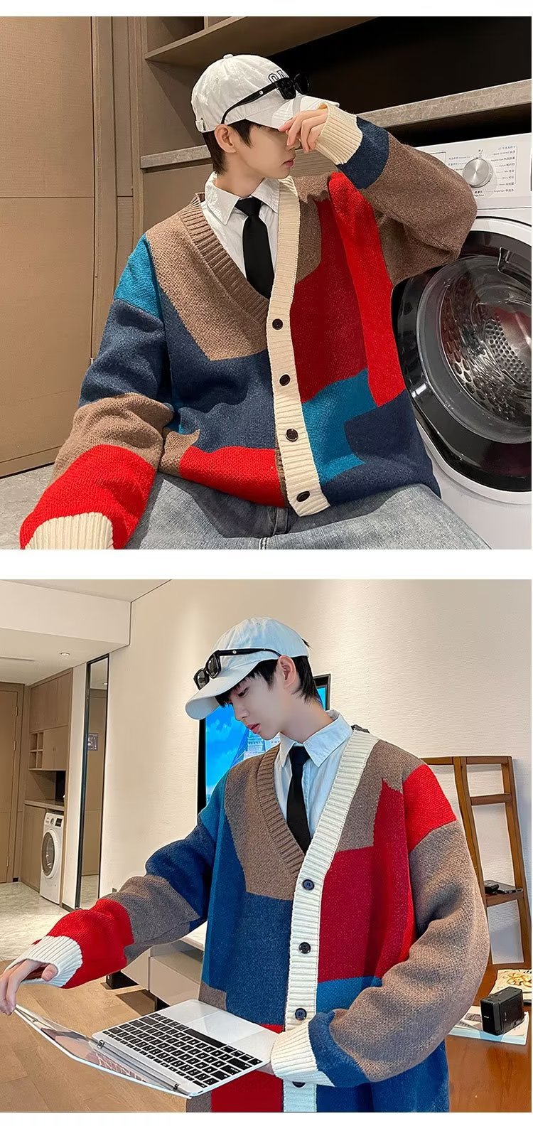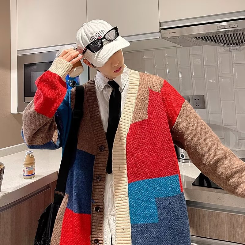 Khối Màu Cardigan Dệt Kim Áo Len Nam Plus Kích Thước Plus Kích Thước Hợp Thời Trang Mỡ Rời Áo Khoác Mùa Thu Cặp Đôi Lười Gió