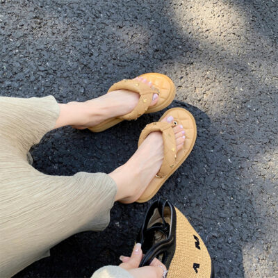 (Không còn hàng) [sheii Su Yinyin] Dép xỏ ngón đế dày Xiaoxiangfeng Dép xỏ ngón đi biển Xăng đan nữ mùa hè