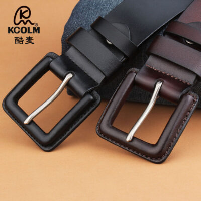 防金属过敏真皮皮带 皮扣牛皮腰带 男士针扣休闲宽简约一件代发