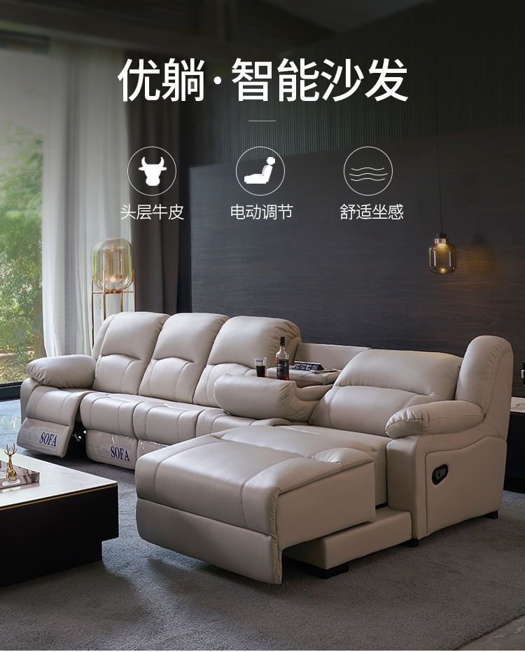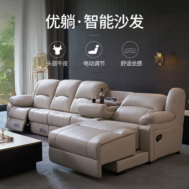 Không gian hạng nhất cabin điện phòng khách ghế dài kết hợp lớp đầu chức năng da bò góc sofa căn hộ lớn nhỏ