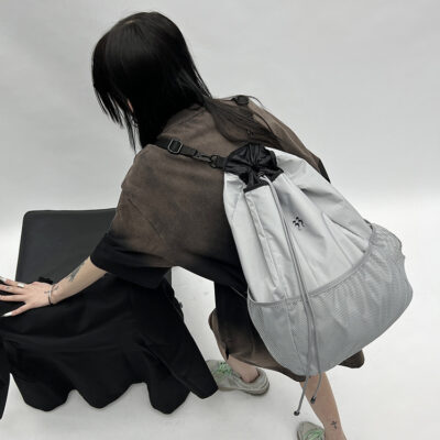 Không gian in offset ba chiều nylon màu xám nhẹ sức chứa lớn Han Keke túi xách nữ chính hãng ba lô lưới xu hướng thích hợp