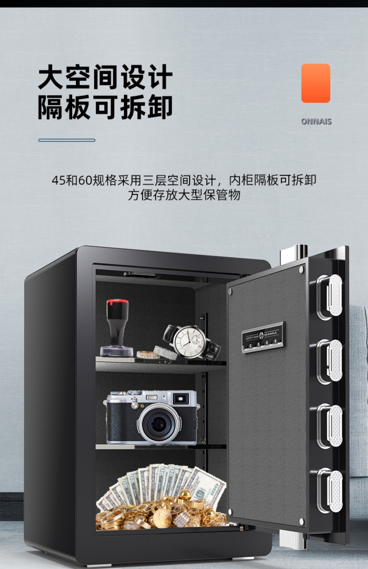 [không gian rộng rãi trên ba tầng] an toàn hộ chất lượng cho khách sạn KS-275 là sản phẩm thuộc danh mục Đồ khách sạn > Két sắt, được thiết kế để đáp ứng nhu cầu tiện nghi và hiện đại trong không gian khách sạn hoặc gia đình.