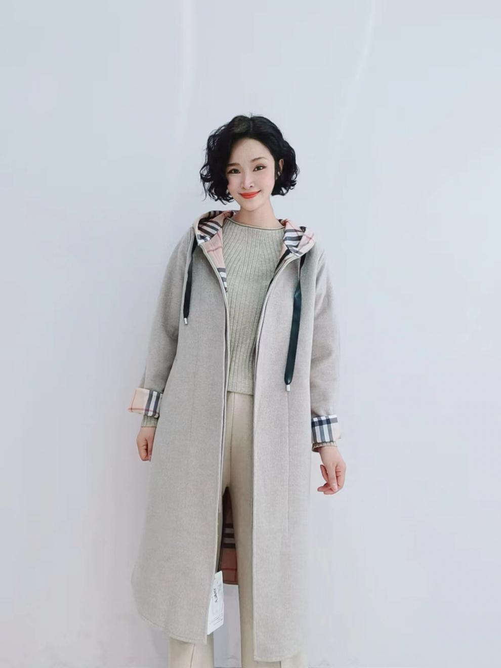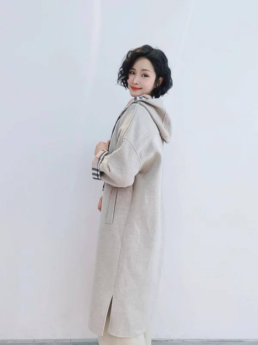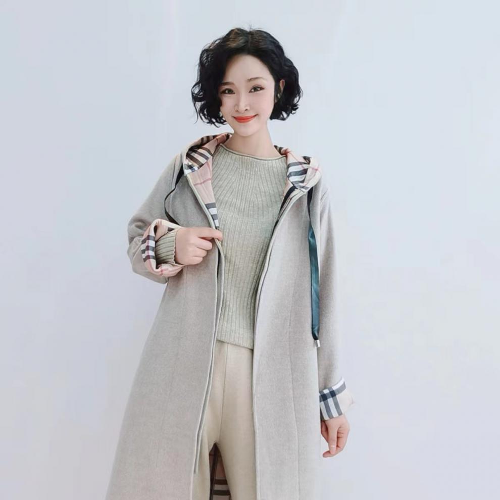 “Không hoàn lại” 6631 áo khoác len dài có mũ trùm đầu khí chất mùa thu đông A12