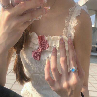 Không phai màu cảm giác cao cấp nhẫn nữ ins niche hợp thời trang nhẫn đá quý ánh sáng sang trọng chất lượng cao mở zircon có thể điều chỉnh