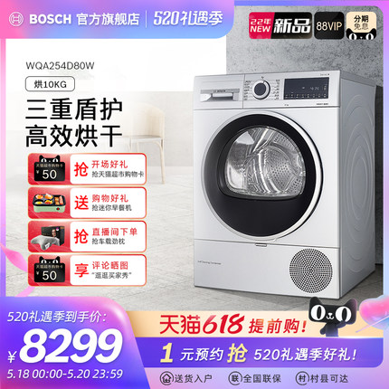 [Khử trùng lớn và sấy khô] Máy sấy quần áo Bosch / Bosch 10kg bơm nhiệt WQA254D80W