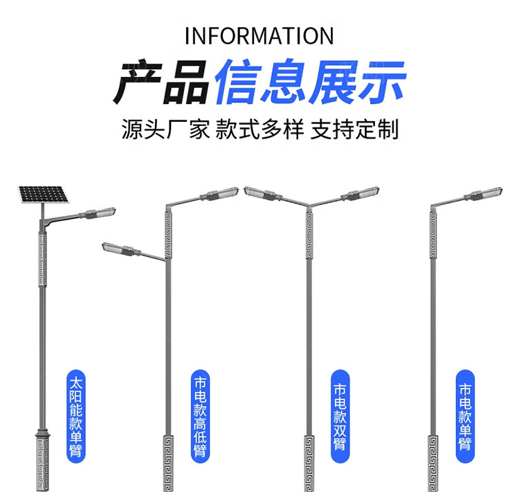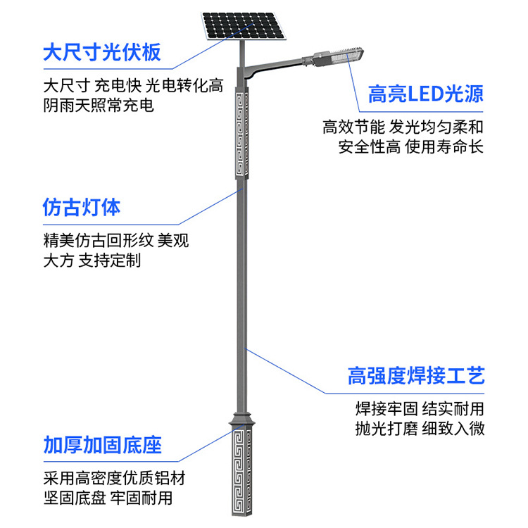Khu vực nông thôn mới 6m 8m đèn led siêu sáng ngoài trời cảnh quan cột đèn cổ điển Trung Quốc năng lượng mặt trời hoa văn cổ đèn đường. Quý khách có nhu cầu mua Đèn năng lượng mặt trời vui lòng liên hệ với chúng tôi để được tư vấn hỗ trợ. Dịch vụ mua hàng Trung Quốc sẽ hỗ trợ quý khách mua hàng từ nhà cung cấp và giao tới tận tay quý khách hàng..Nơi xuất xứ: Giang Tô Mã số: Đèn đường Thương hiệu: Xin Hongteng Công suất: 100w Thông số kỹ thuật sản phẩm: Mains Model 5m/Massive Model 6m/Solar Model 5m/Solar Model 6m/6m Mains Double Arm/6m Solar Double Arm/Các thông số kỹ thuật khác xin vui lòng liên hệ với dịch vụ khách hàng để biết chi tiết/Các thông số kỹ thuật khác để biết chi tiết, vui lòng liên hệ với dịch vụ khách hàng Model: 000568 Phạm vi ứng dụng chính: Chiếu sáng đường ngoài trời Liệu có bằng sáng chế hay không: Không Chứng nhận: Chứng nhận EU CE Số đơn hàng: 000598 Cho dù đó là người nộp thuế chung: Có Chất liệu : Thép Q235 Loại nguồn sáng: Điện áp LED: 220 Cấp độ bảo vệ: IP65 Xử lý và tùy chỉnh: Có Kích thước tổng thể: 5 mét 6 mét 7 mét 8 mét Có độc quyền cho xuất khẩu xuyên biên giới Nguồn cung cấp: Không Số chứng chỉ: TMC220225107-C Phong cách: Trung Quốc Khu vực bán hàng chính: Đông Nam Á Quy trình: Mạ nóng Kẽm nhập khẩu: Không