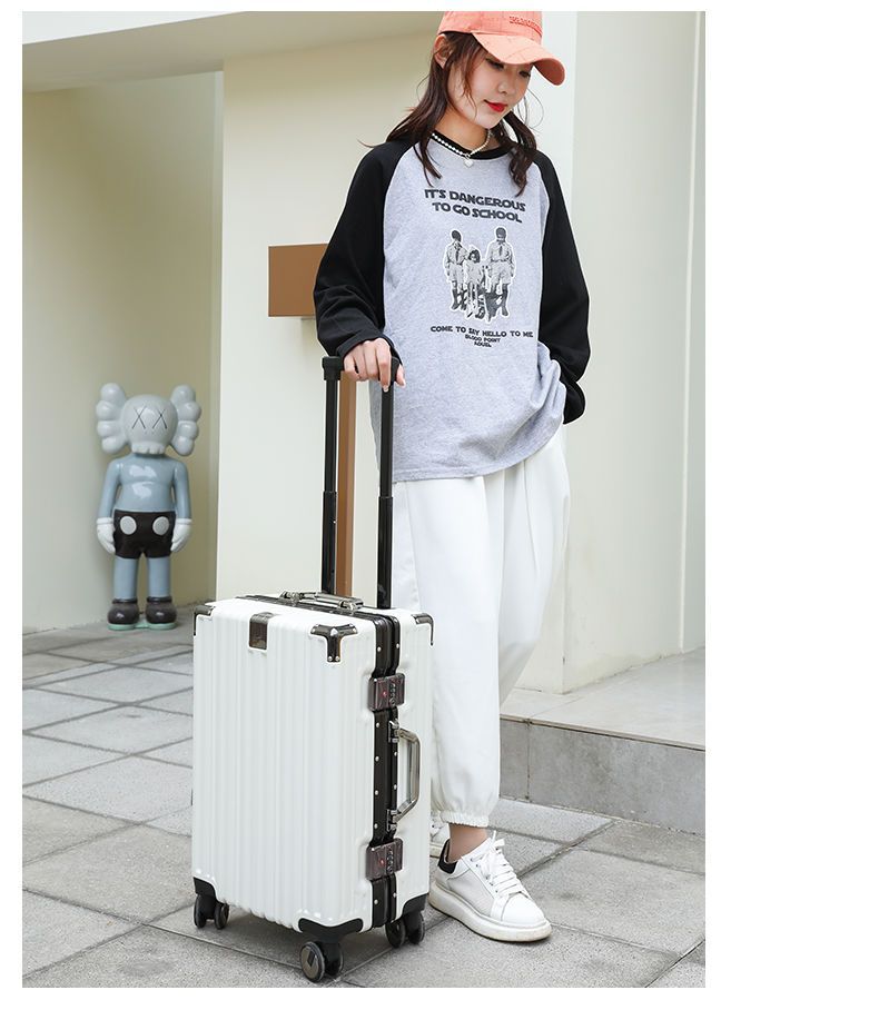 Khung nhôm có thể lên vali siêu dung tích lớn vali bánh xe đa năng hộp mật khẩu du lịch tiện lợi xe đẩy học sinh chống mài mòn
