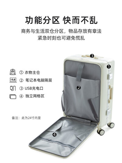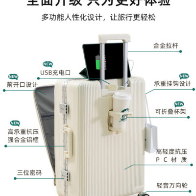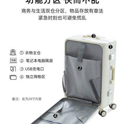 Khung nhôm đa chức năng hành lý bán buôn PC mở phía trước xe đẩy va li hộp mật khẩu phổ bánh xe lên máy bay