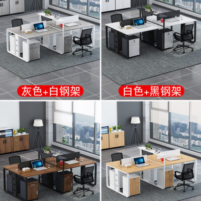 Khung thép đậm kết hợp bàn máy tính văn phòng nhiều người và ghế ghế nhân viên bốn người nội thất văn phòng đơn giản