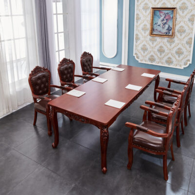 Kịch bản bàn ghế ăn theo phong cách châu Âu của Trung Hoa Dân Quốc gỗ đặc hình chữ nhật dài 2 đến 3 mét 10 người bán buôn bàn cửa hàng vật lý là sản phẩm nổi bật trong dòng bàn ăn nhập khẩu, thiết kế hiện đại và sang trọng, phù hợp với nhiều không gian nội thất cao cấp.