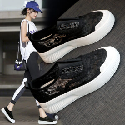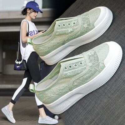 Kích thước lớn giày ngư dân nữ 2023 mới phối ren lưới thoáng khí đáy bằng lười lười lười thời trang bà bầu giày nữ