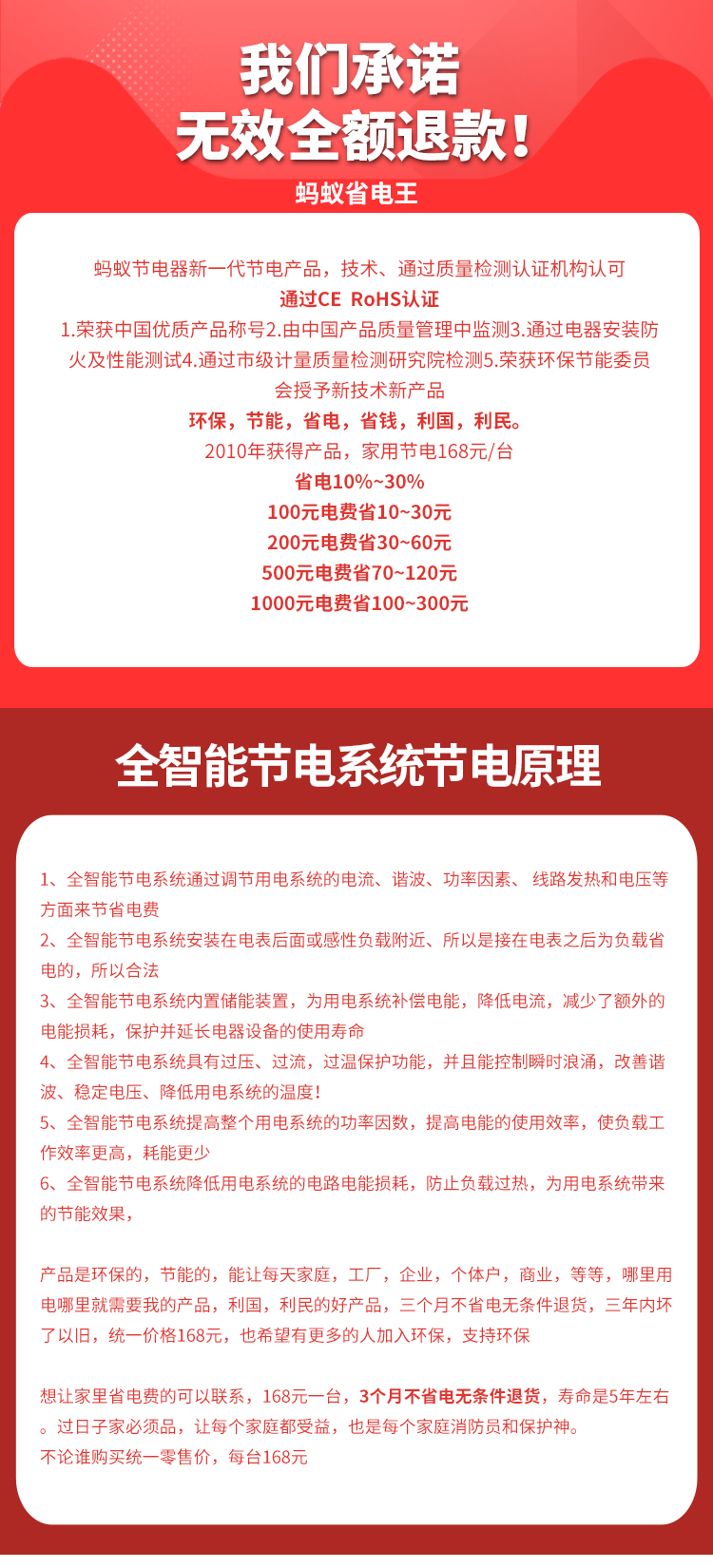 各位朋友,欢迎了解蚂蚁省电王直接找客服,在其他地方购买的有质量问题或假冒伪劣产品,请找他们,谢谢合作! 这款产品是每月500度电内使用最佳,超过可叠加
