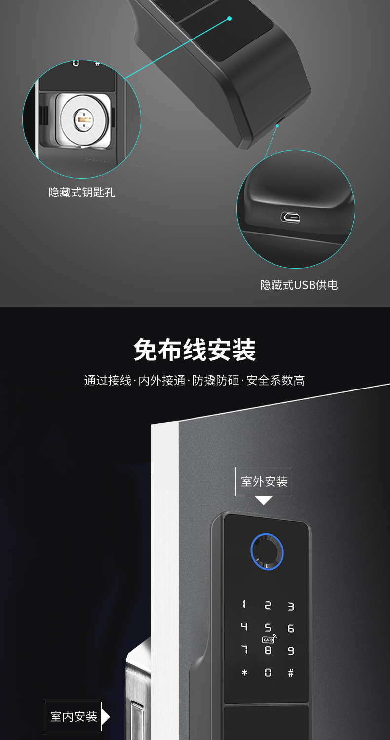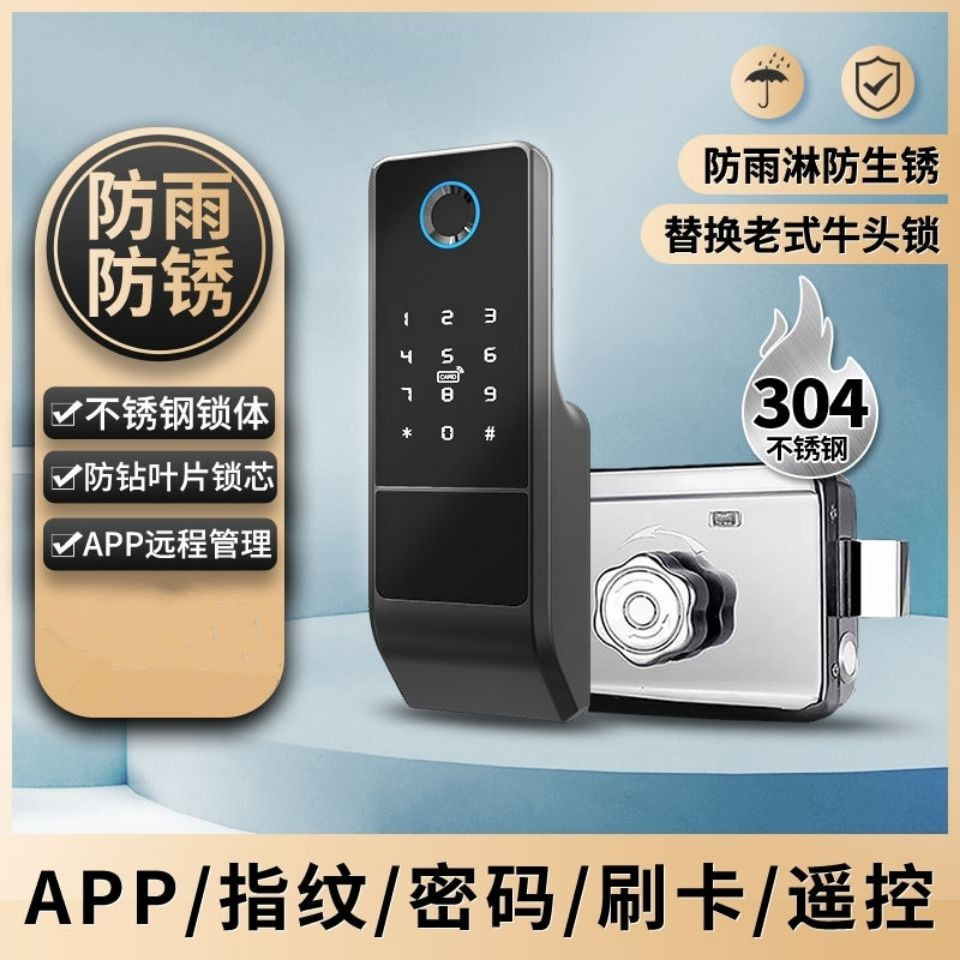 Kiểu cũ cửa sắt khóa đầu bò khóa vân tay thép không gỉ cửa sân ngoài trời chống nước thông minh điều khiển điện tử quẹt thẻ khóa mật khẩu