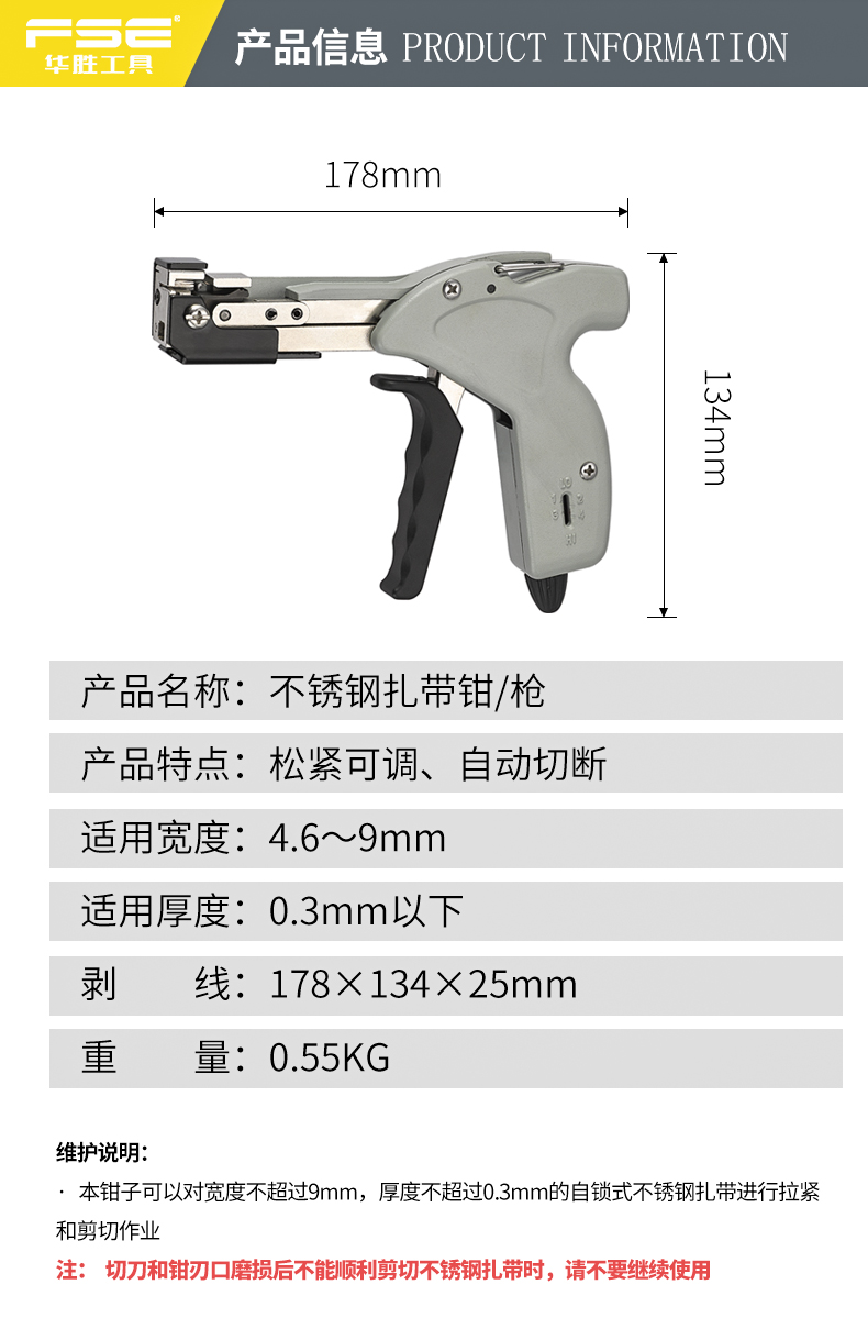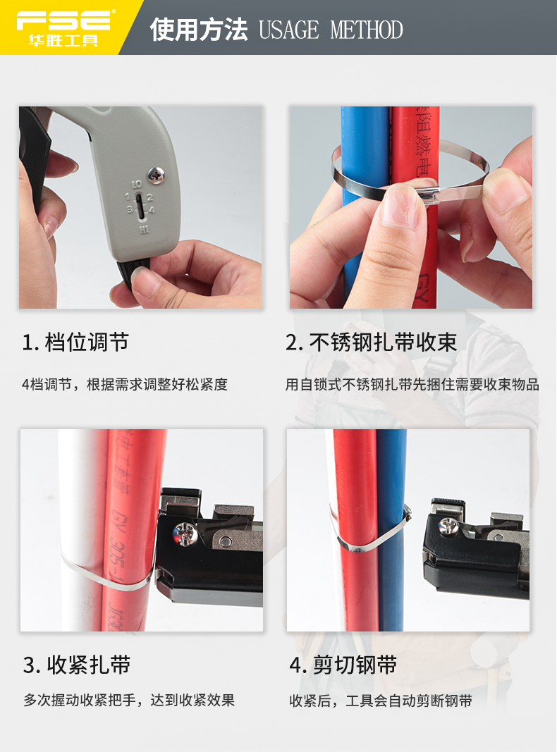 Kìm buộc dây cáp bằng thép không gỉ Huasheng VSZ-600N tự khóa dây buộc súng cắt kéo Công cụ đóng kiện đóng đai