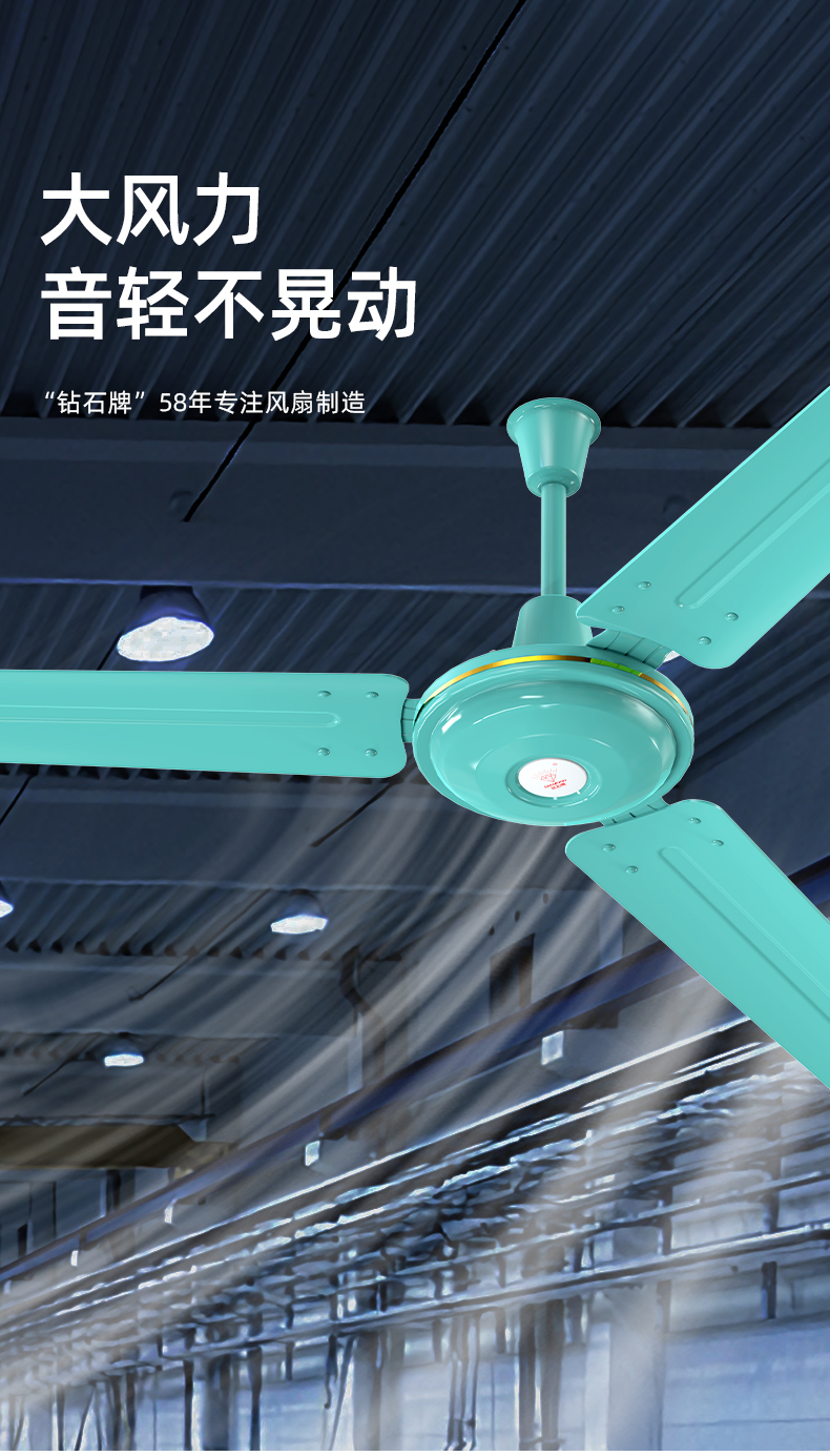 Kim cương thương hiệu quạt trần 56 inch phòng khách gia đình gió lớn ngành công nghiệp mới quạt trần lá sắt nhà hàng ký túc xá quạt thương mại