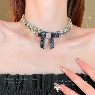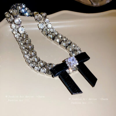 Kim Cương Zircon Nơ Da Vòng Cổ 2 Lớp Thời Trang Niche Light Vòng Cổ Sang Trọng Khí Chất Trang Sức Cao Cấp Bán Buôn