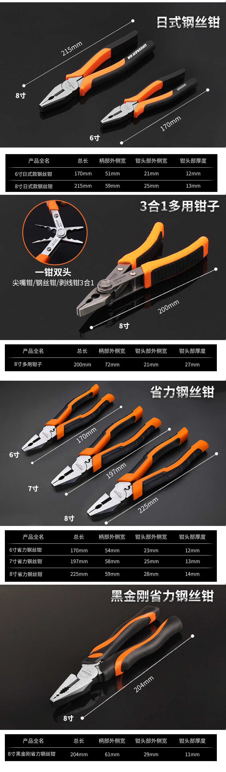 Kìm tuốt dây tiết kiệm sức lao động rừng xanh 8 inch 6 inch kìm đa năng cấp công nghiệp kìm thợ điện kìm cầm tay bộ