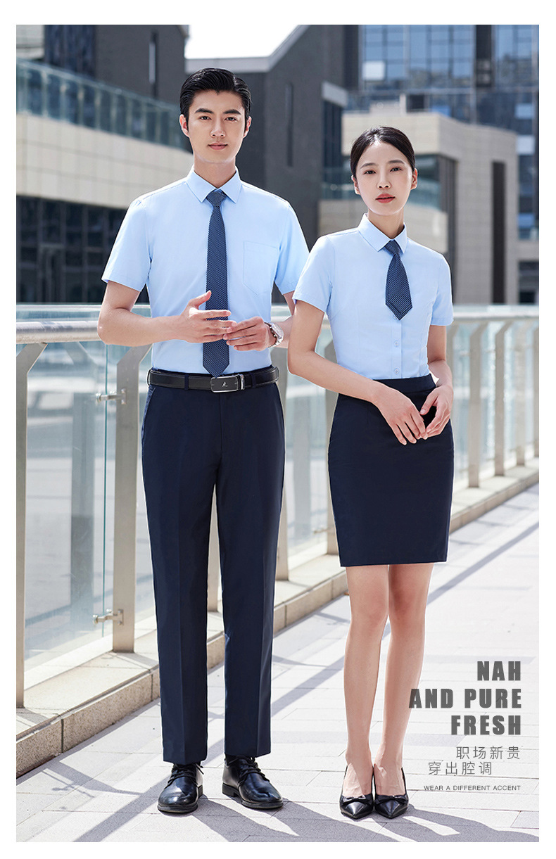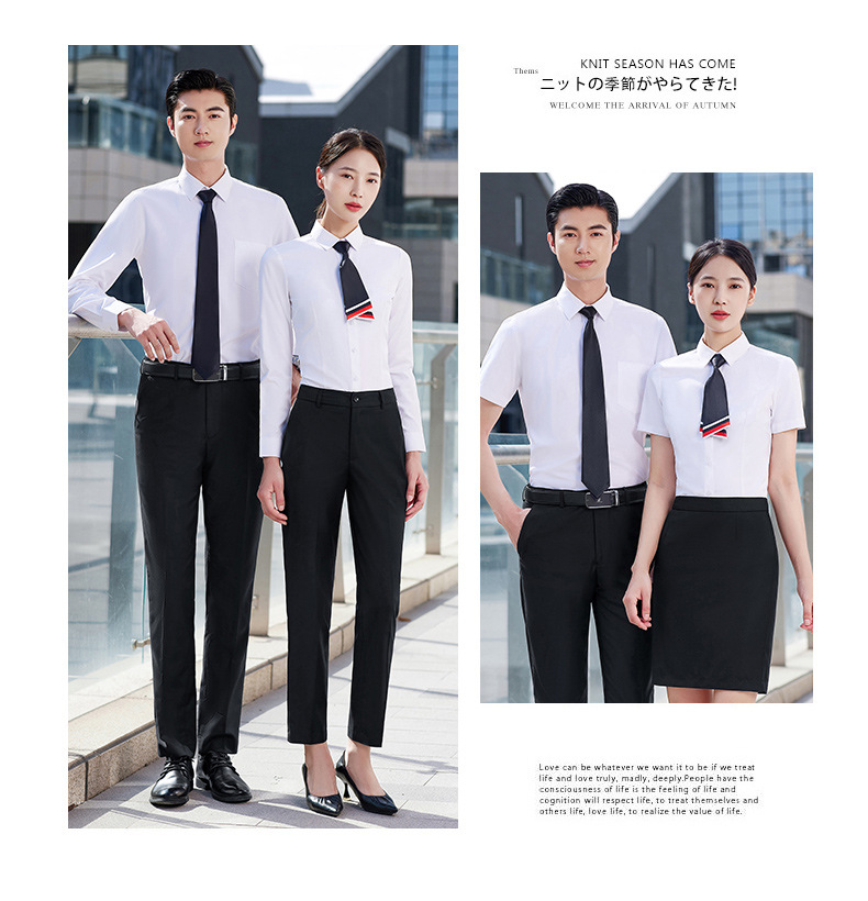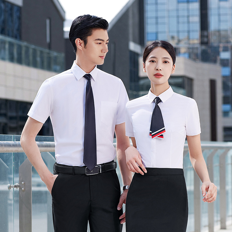 Kinh doanh áo sơ mi trắng nam cùng phong cách nữ ngắn tay không ủi chuyên nghiệp nam mặc trang phục đồng màu áo sơ mi cotton yếm bán buôn
