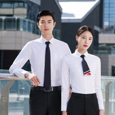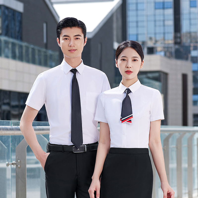Kinh doanh áo sơ mi trắng nam cùng phong cách nữ ngắn tay không ủi chuyên nghiệp nam mặc trang phục đồng màu áo sơ mi cotton yếm bán buôn