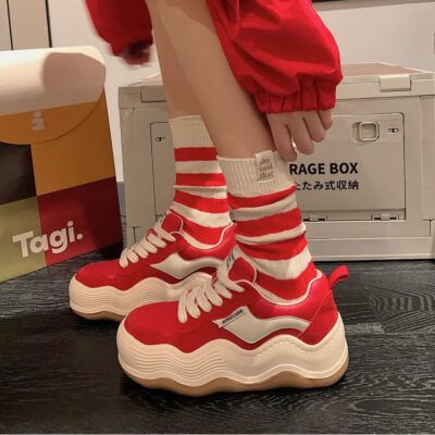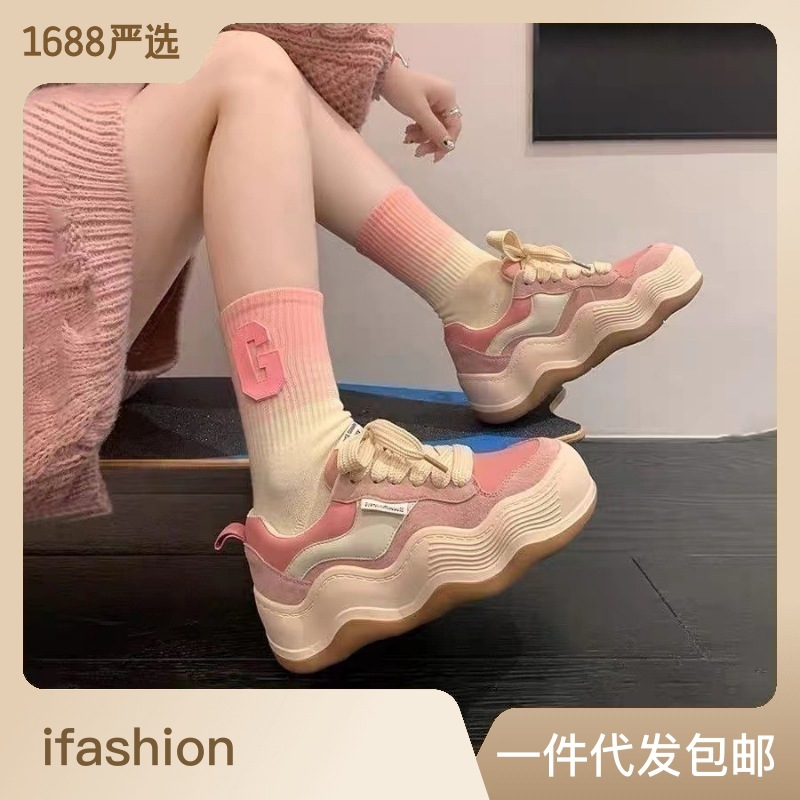 Kinh Minh Ban Đầu Cầu Vồng Pony ~ Mùa Xuân 2023 Làn Sóng Mới Đáy Dày Tăng Màu Thể Thao Và Giải Trí Giày Sneakers Nữ