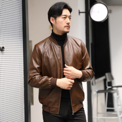 Kuaishou rung phát sóng trực tiếp Hained mùa thu và mùa đông áo khoác da nam mới phần mỏng cổ áo đứng trung niên và trẻ tuổi áo khoác da thông thường
