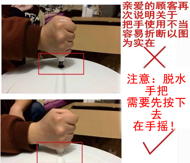 关于手柄使用的特别说明:亲们,在使用手柄时切勿将白色外套提起来摇,因为一旦将外套提起,手柄就失去了保护,里面的塑料一受力就容易折断,外套就是起到保护的作用的! 先按下在手摇!