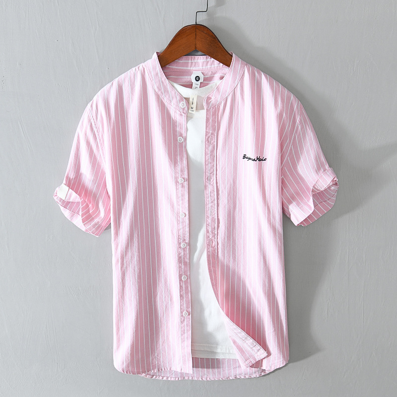L871 Mùa Hè Áo Sơ Mi Sọc Dọc Màu Tương Phản Nam Bảng Chữ Cái Tiếng Anh Sọc Ngắn Tay Áo Sơ Mi Nam Mặc