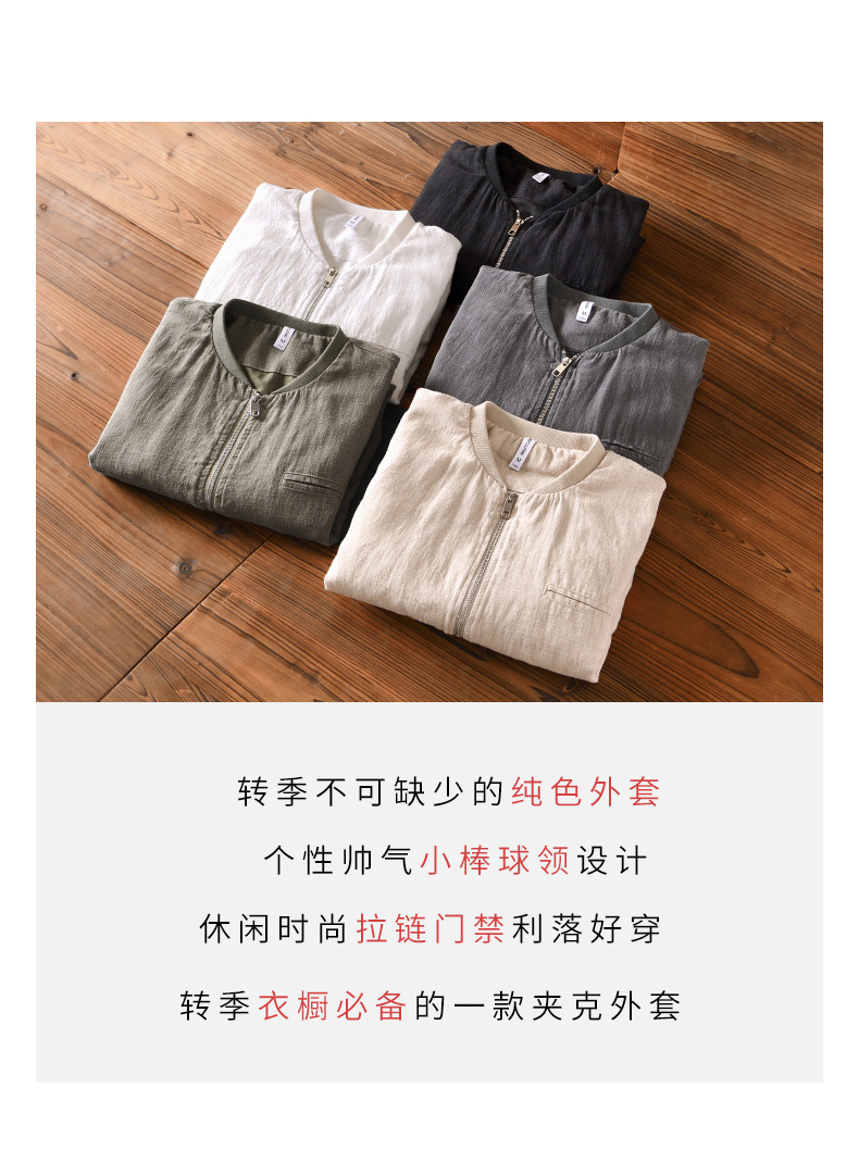 L951 Retro Cổ Gai Áo Khoác Nam Bóng Chày Rời Áo Khoác Nam Thanh Niên Nam Thu Đông Vải Lanh Cotton Cao Cấp nam