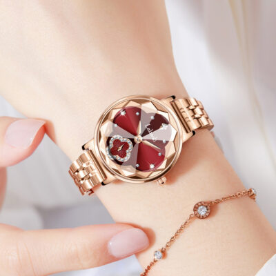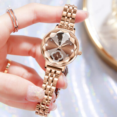 La Baoli labaoli thép mới dây đồng hồ nữ đồng hồ độc lập tấm thứ hai mặt số hoa cỏ bốn lá LA291