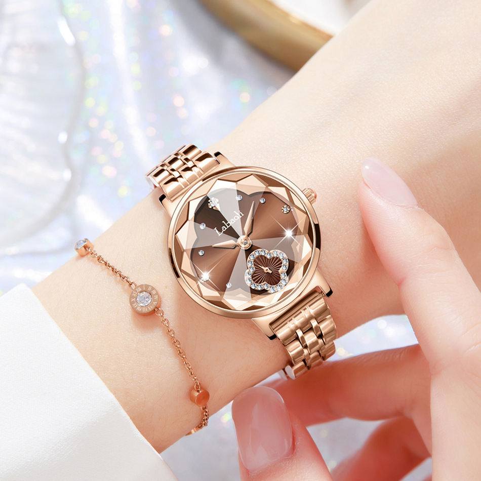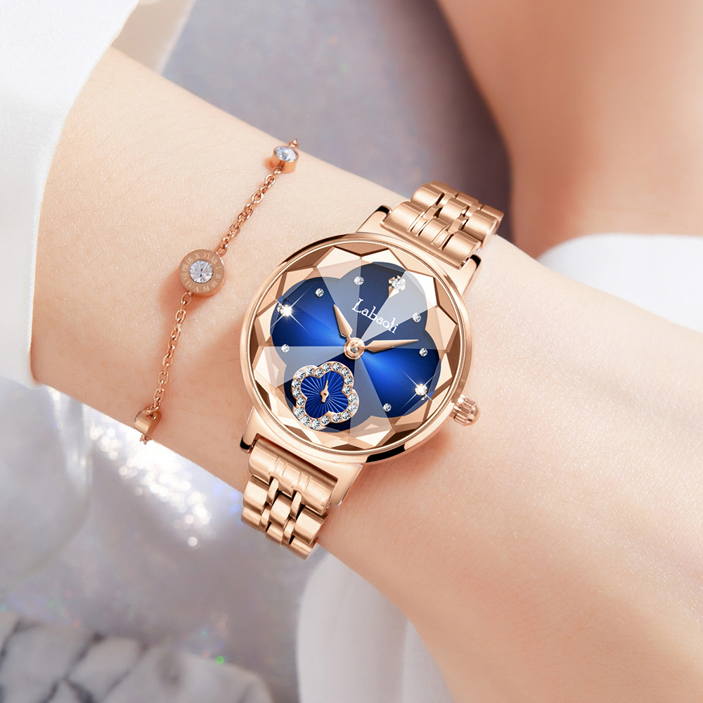 La Baoli labaoli thép mới dây đồng hồ nữ đồng hồ độc lập tấm thứ hai mặt số hoa cỏ bốn lá LA291