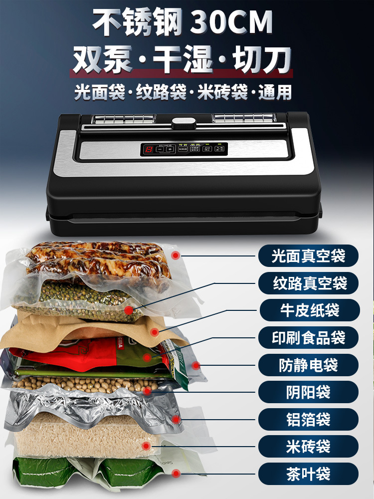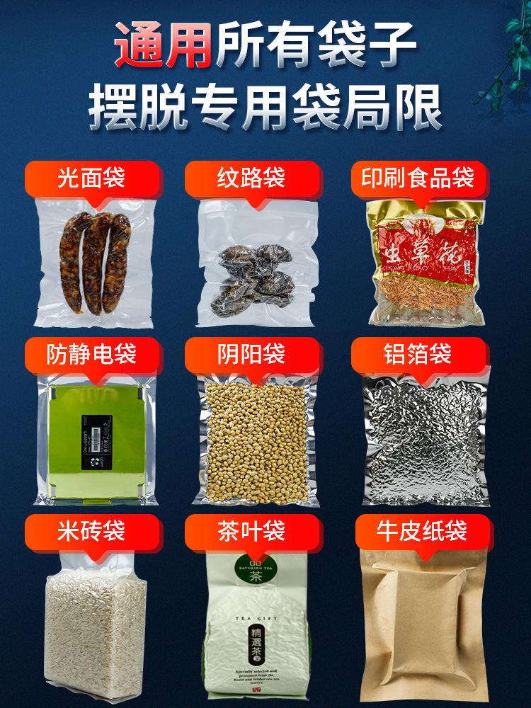 温馨提示:本款机器纹路袋和折角袋以及平面真空袋,真正的一机,多袋。