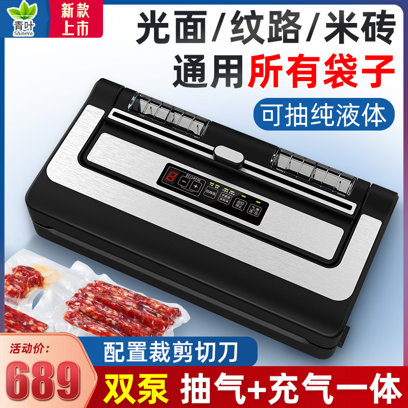 Lá xanh mới Máy hàn chân không tự động xuyên biên giới Máy niêm phong nhựa thực phẩm Máy đóng gói gia dụng Máy bơm chân không thương mại