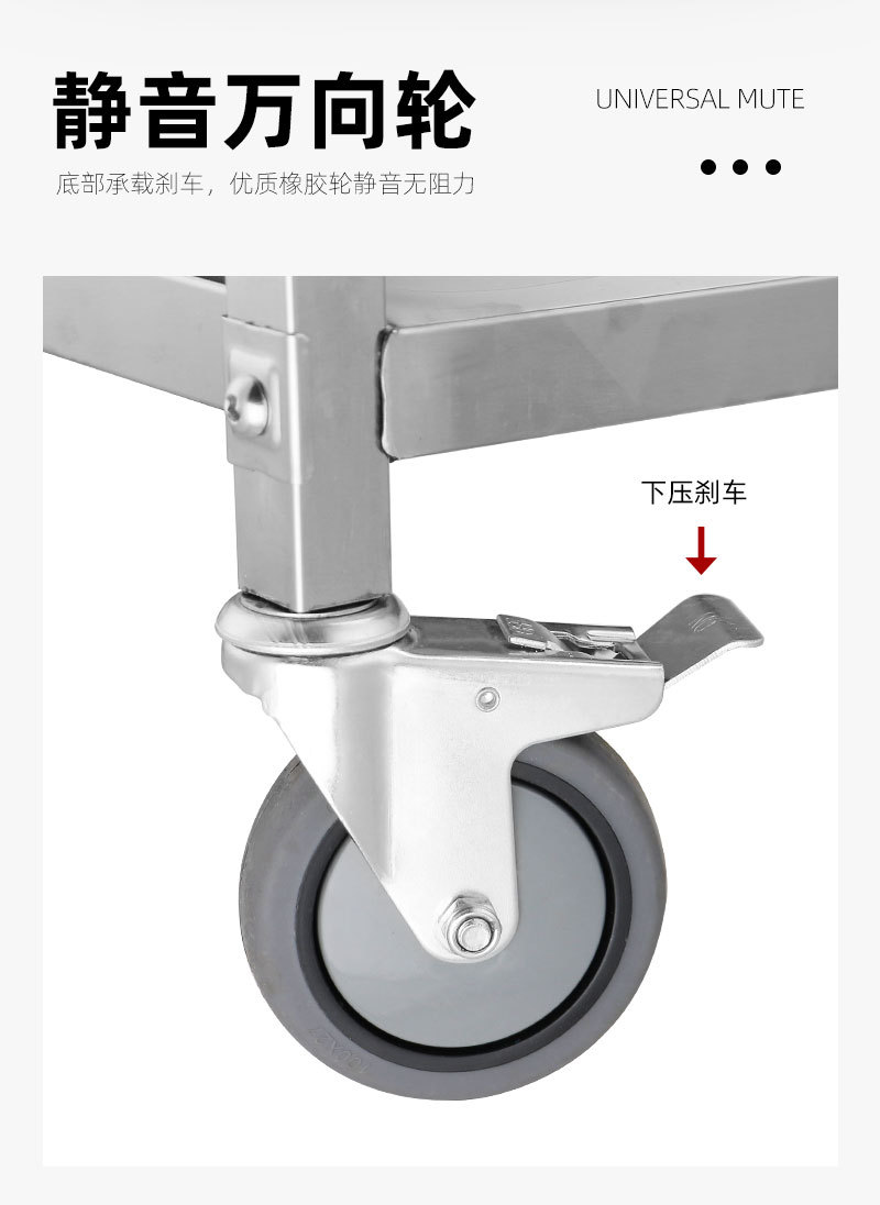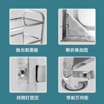 Làm dày bằng thép không gỉ xe ăn ba tầng xe đẩy ăn uống thương mại bộ sưu tập xe đẩy bát xe đẩy nhà hàng xe đẩy giao hàng khách sạn phục vụ xe đẩy